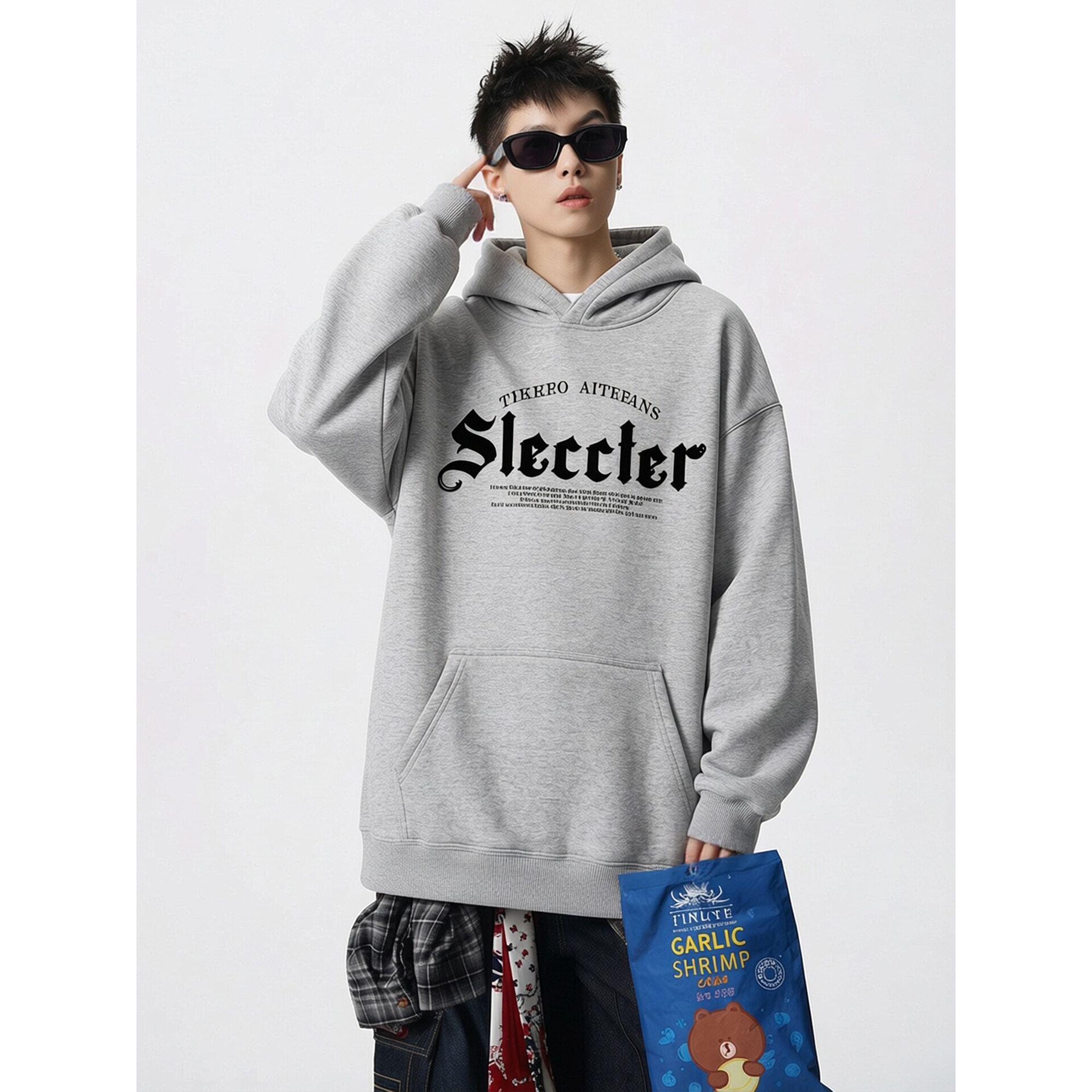 卫衣男女款2026新款美式宽松连帽卫衣春秋款重磅加绒灰色情侣外套