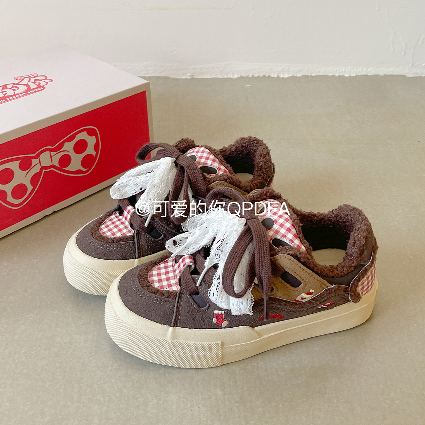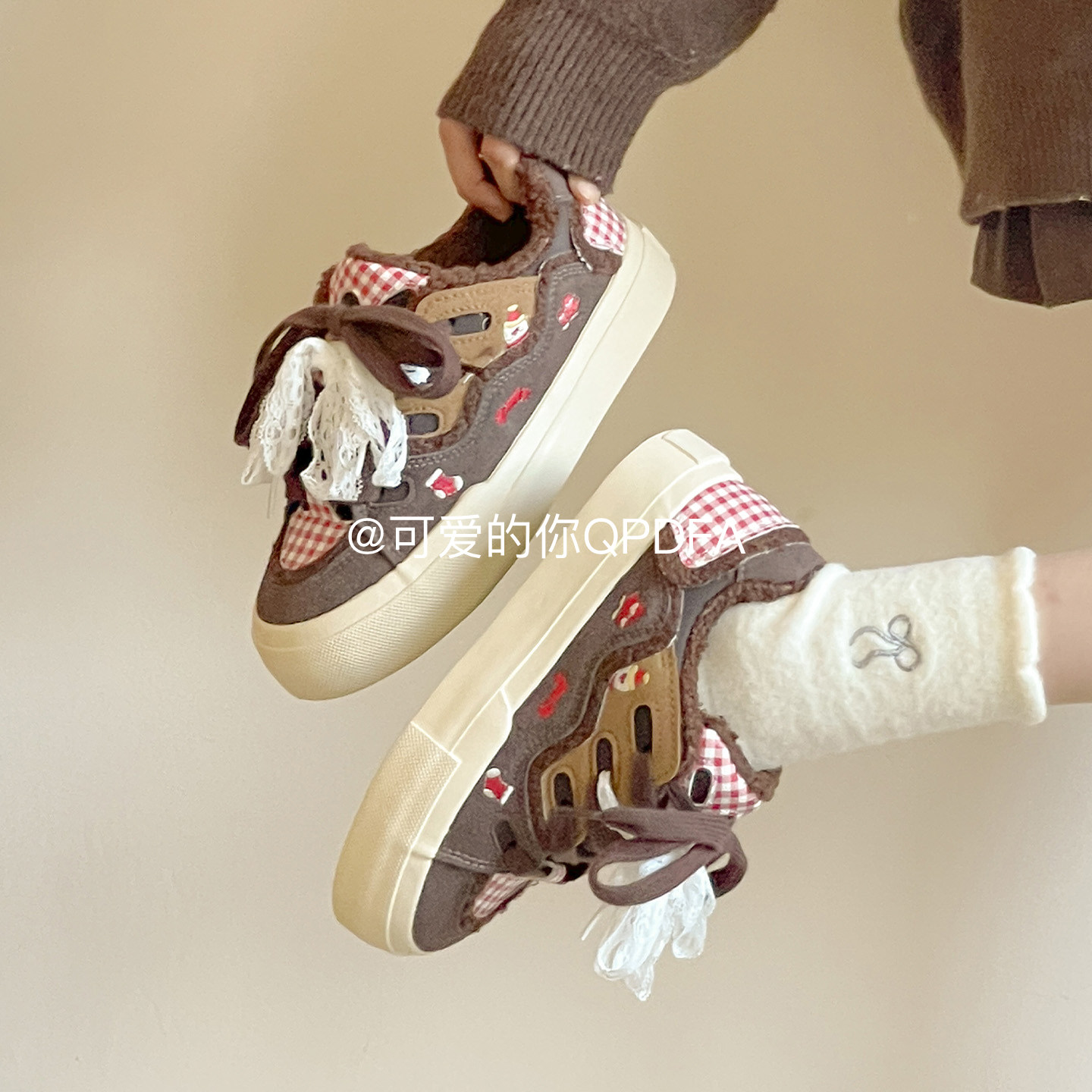 可爱的你 厚底小白鞋女款2025新款冬季加绒板鞋女鞋面包鞋二棉鞋