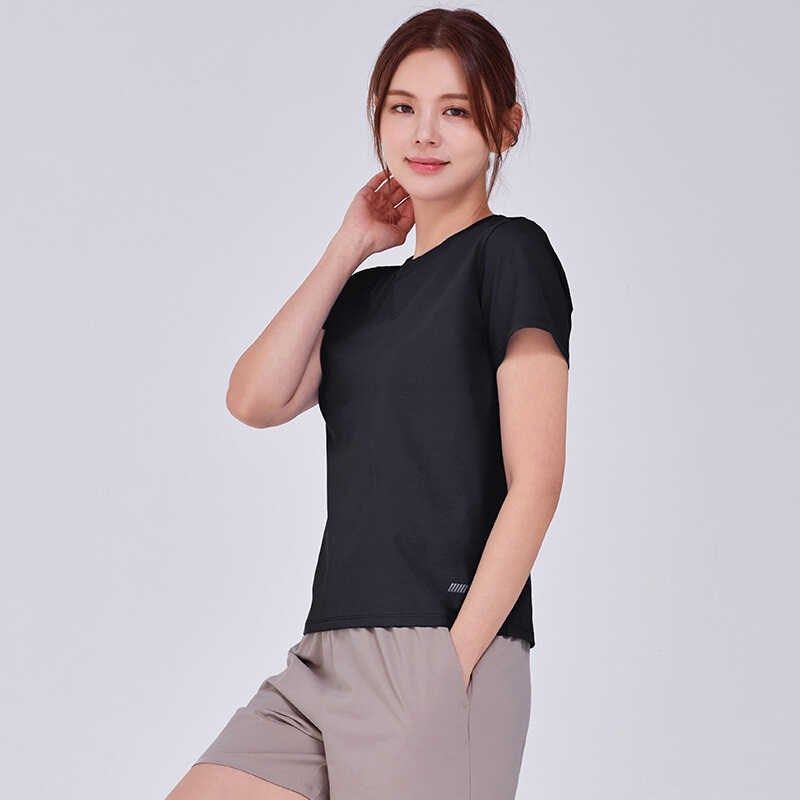 女士瑜伽T恤短款运动上衣透x气健身速干短袖宽松显瘦跑步羽毛球服