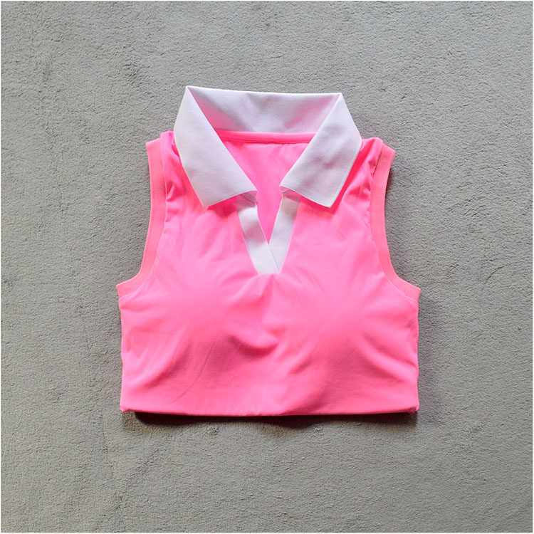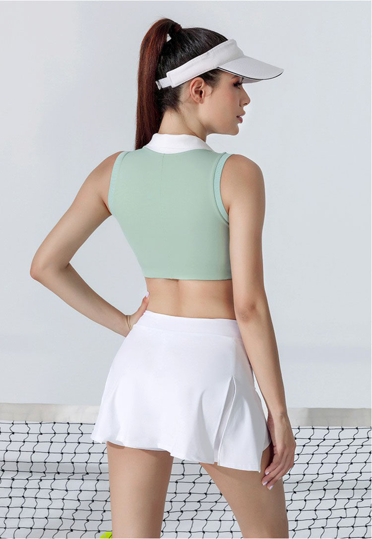 女子专业网球服无袖T恤 短款翻领时尚速干运动羽毛球上衣可拆卸垫
