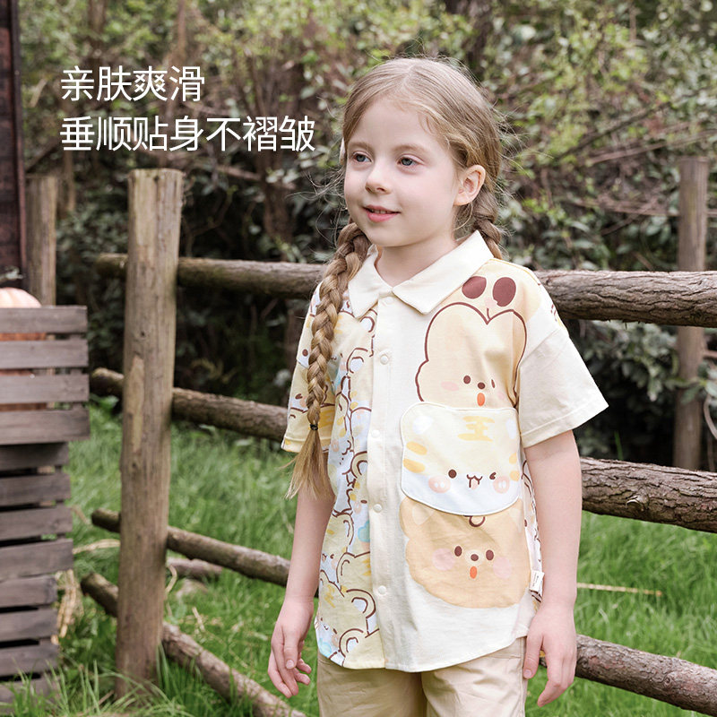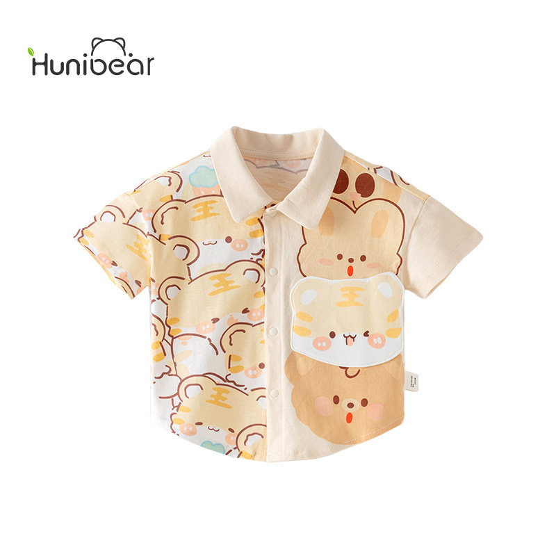 欢喜小熊宝宝纯棉短袖衬衫男童夏季薄款上衣儿童衣服夏装衬衣童装