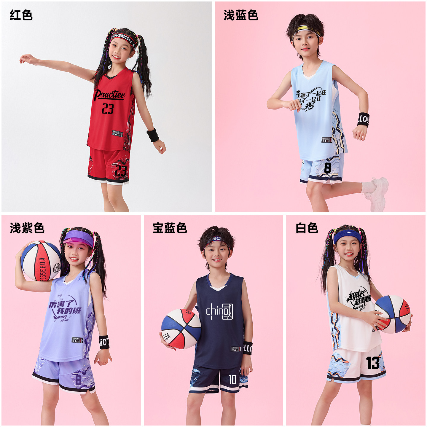 紫色儿童篮球服套装定制男女童球衣小学生训练营比赛队服篮球衣春