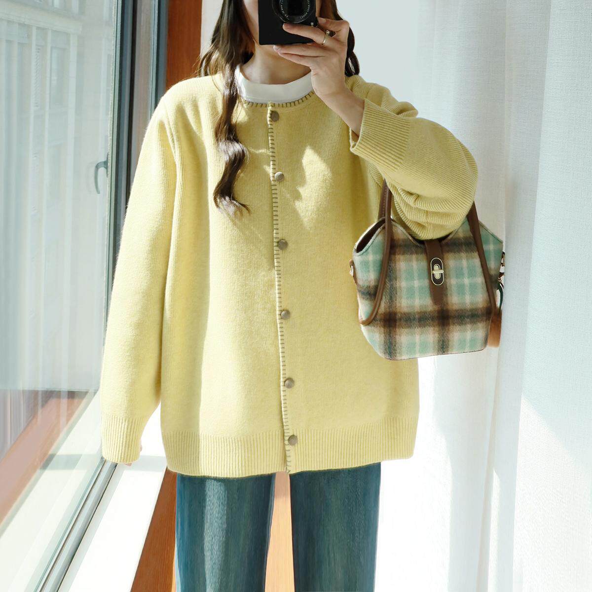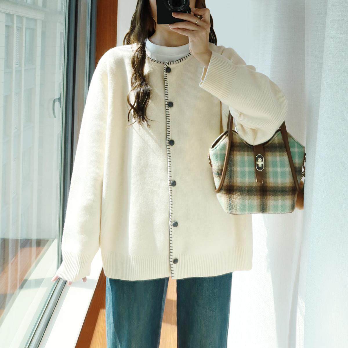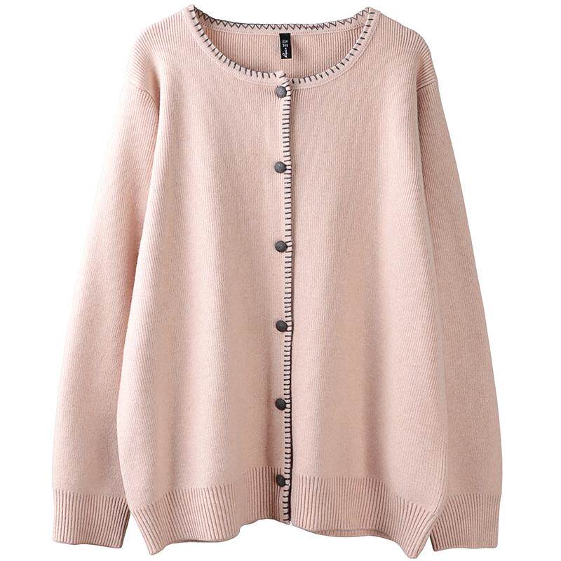 大码加厚毛衣外套女不起球200斤胖mm秋冬宽松慵懒风圆领开衫上衣