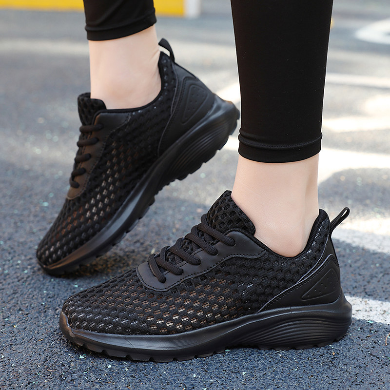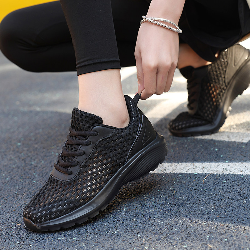 黑色夏季女鞋女士网鞋透气运动鞋轻便跑步鞋镂空单网眼休闲鞋防臭