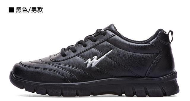 双星秋冬新款软底黑色低帮防滑运动休闲跑步鞋男款皮革轻便慢跑鞋