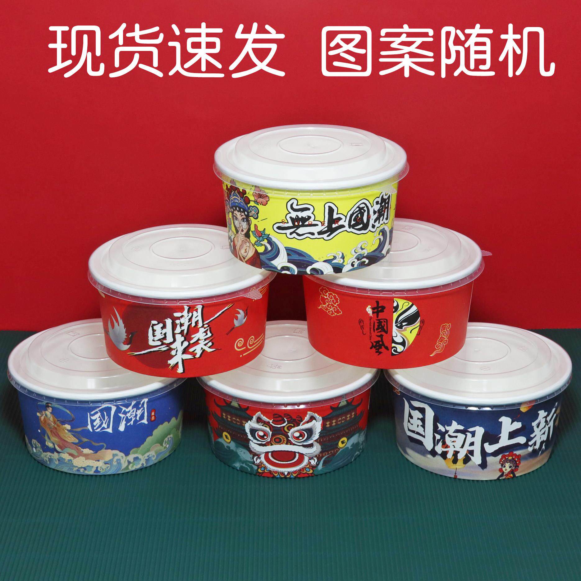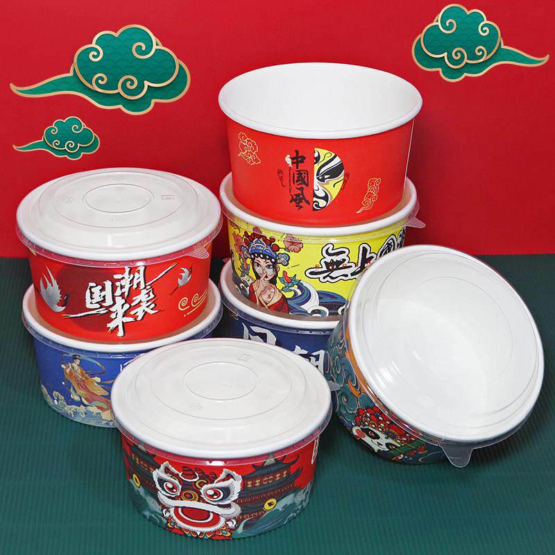 国潮纸碗一次性牛皮纸圆形打包盒饭盒沙拉碗卤肉饭盖浇纸餐盒定制
