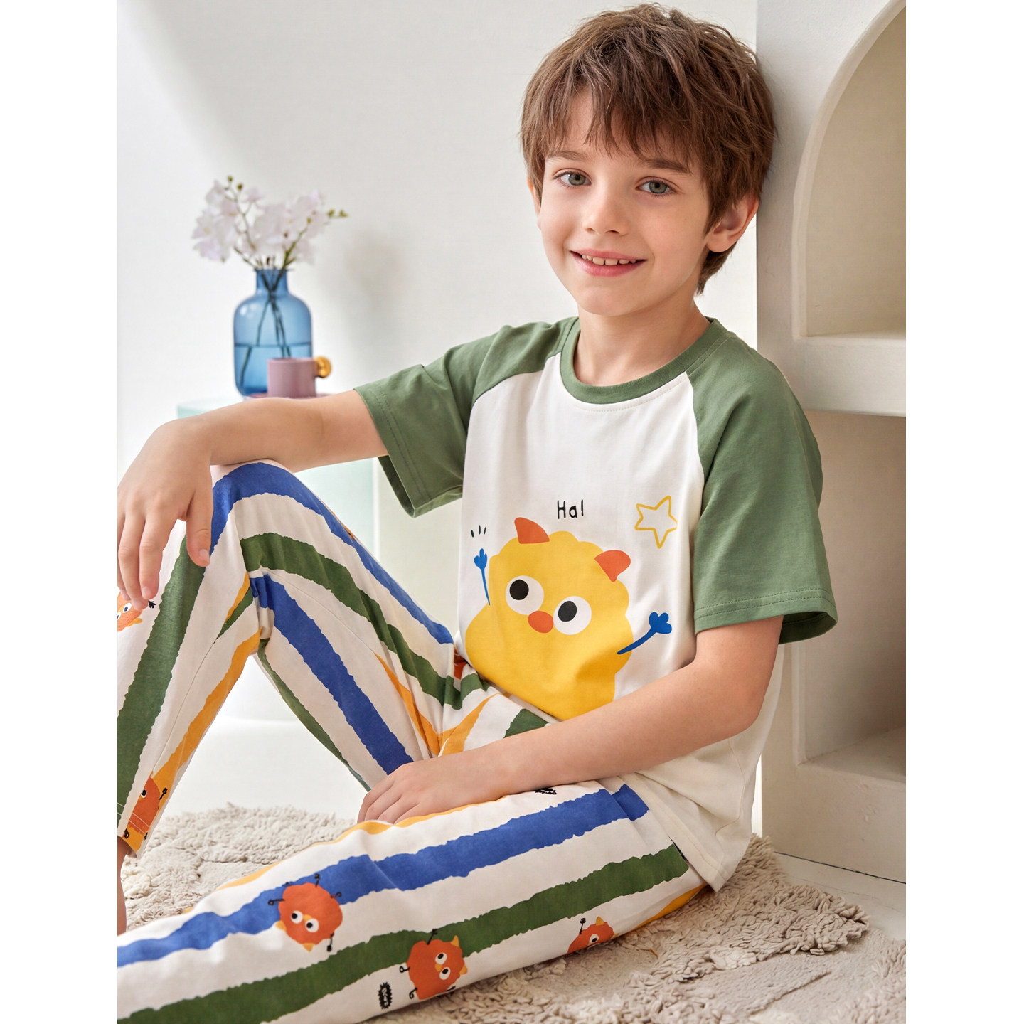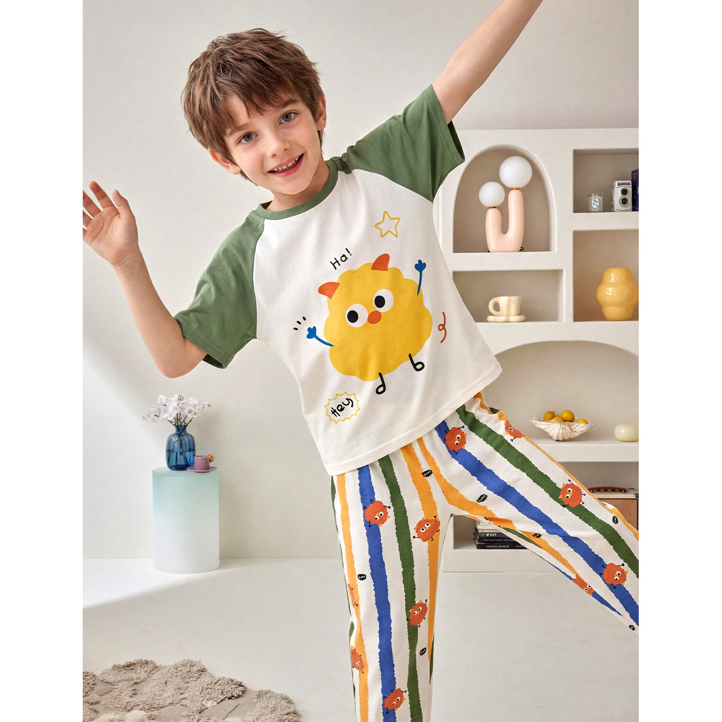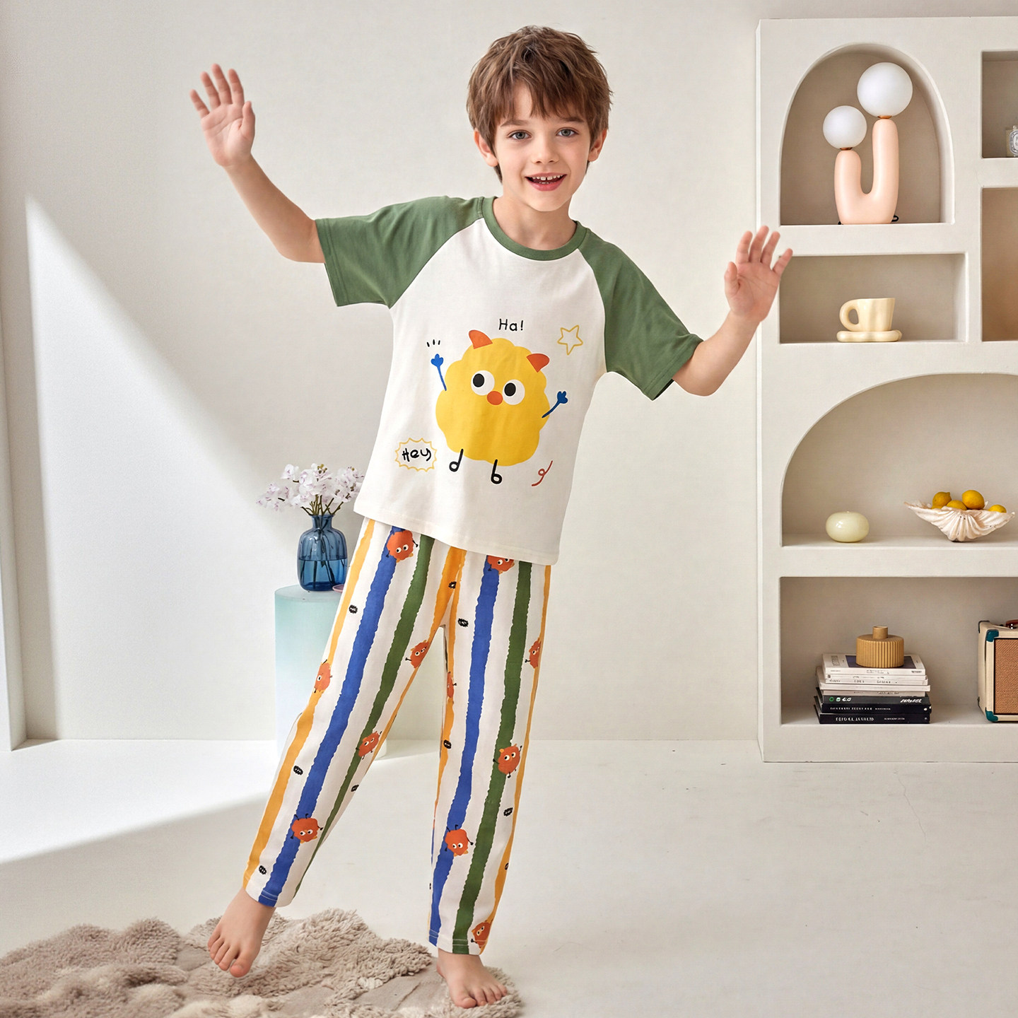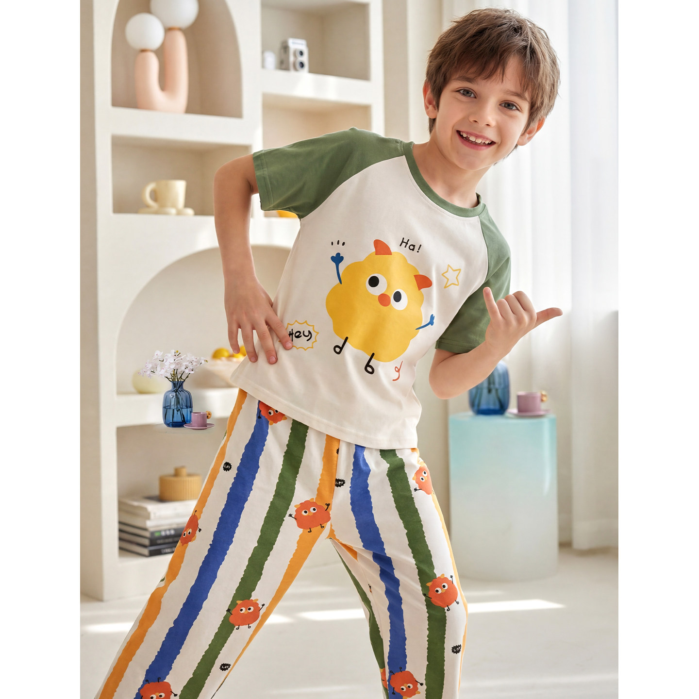 芬腾男童纯棉睡衣夏季薄款短袖套装儿童中大童卡通可爱宽松家居服