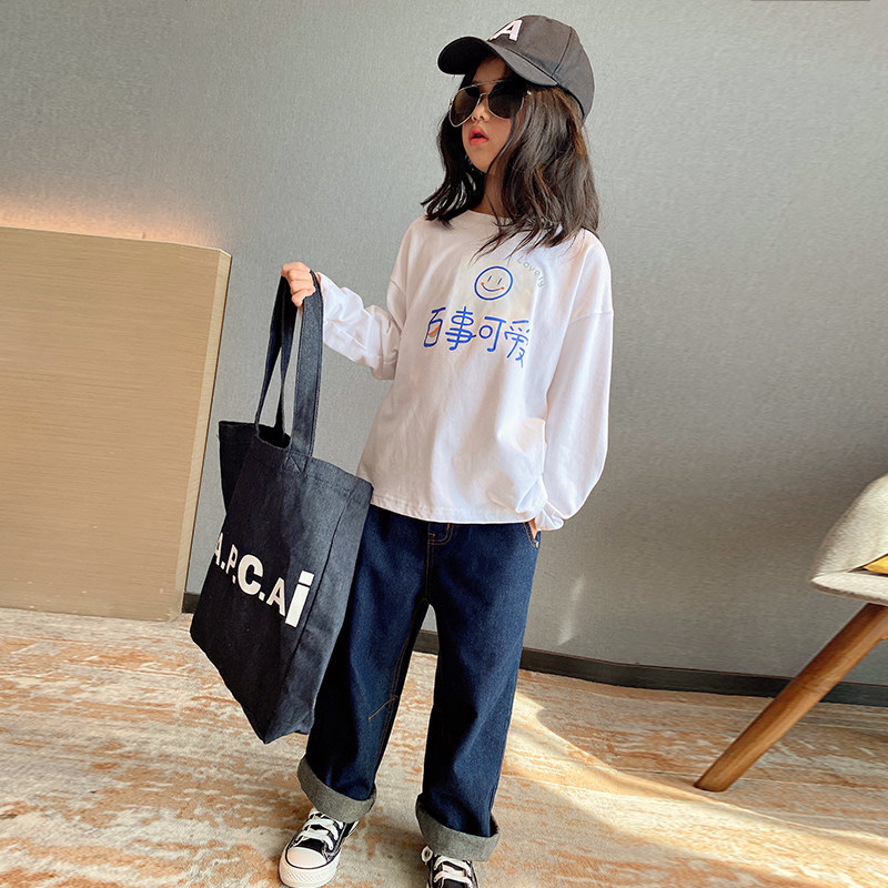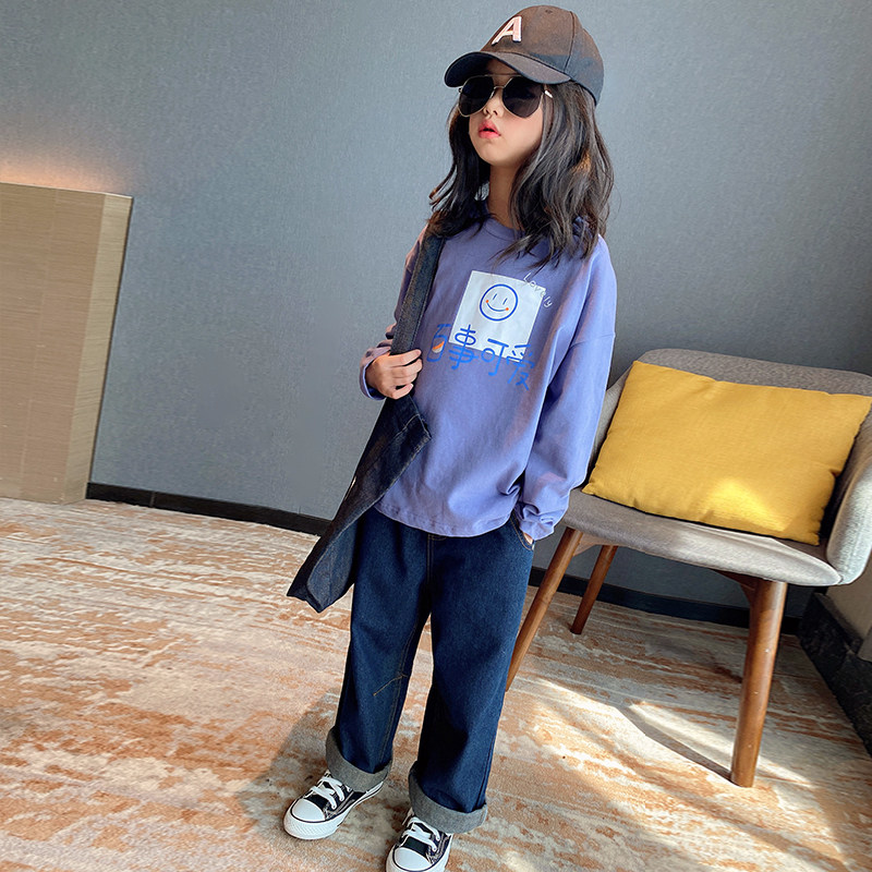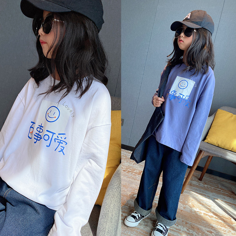 女童春装上衣长袖T恤2026中大童新款时髦洋气纯棉简约圆领打底衫
