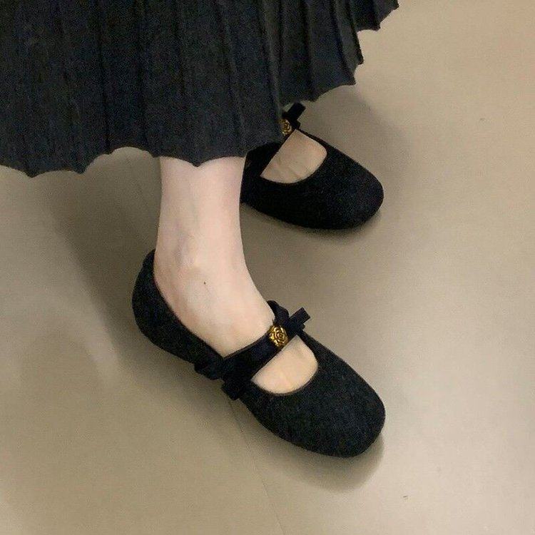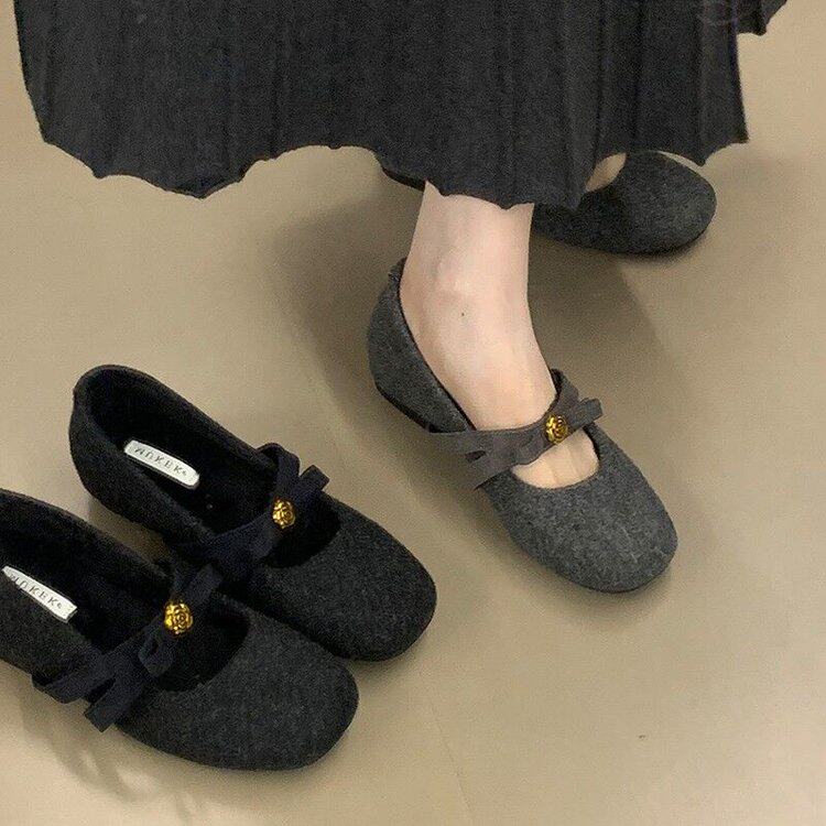 内增高灰色毛毛玛丽珍鞋女2025秋冬季新款蝴蝶结厚底加绒保暖棉鞋