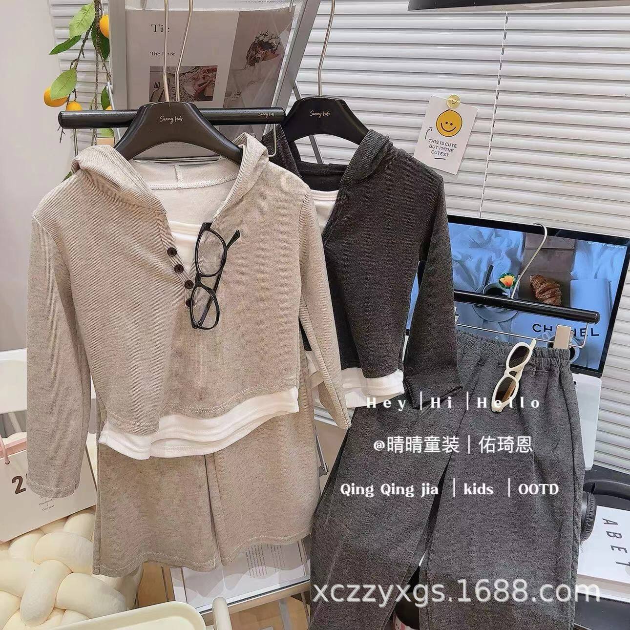 2025春季女童假两件休闲上衣阔腿裤两件套婴儿童纯棉运动宝宝套装