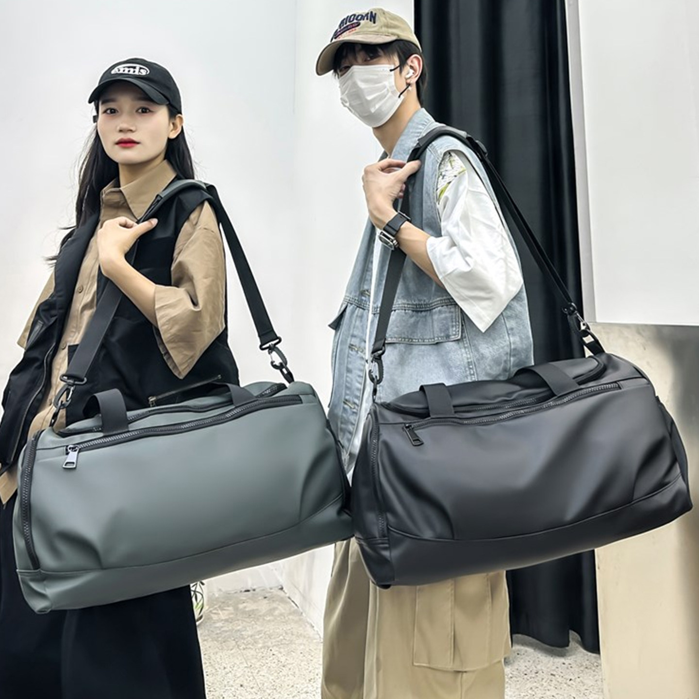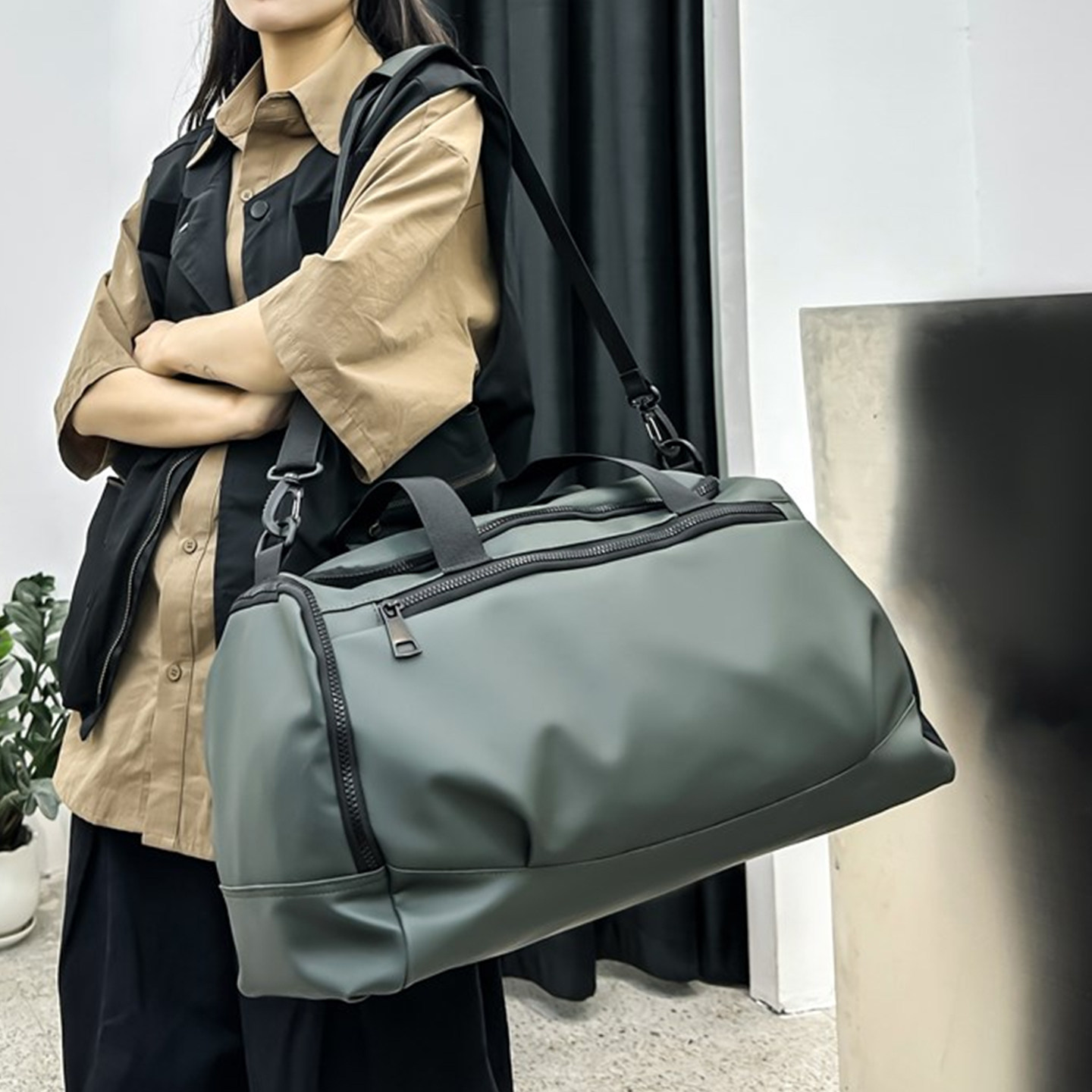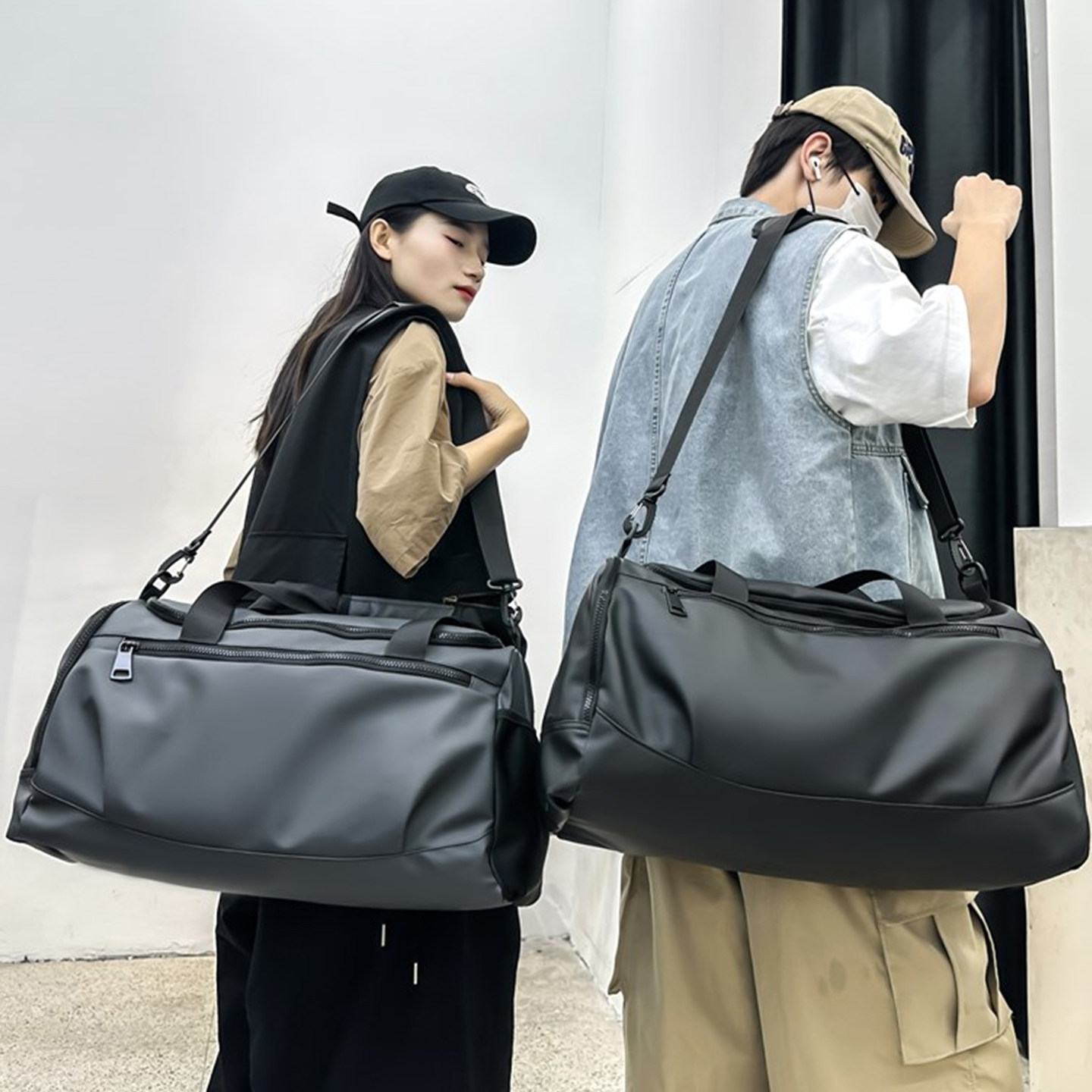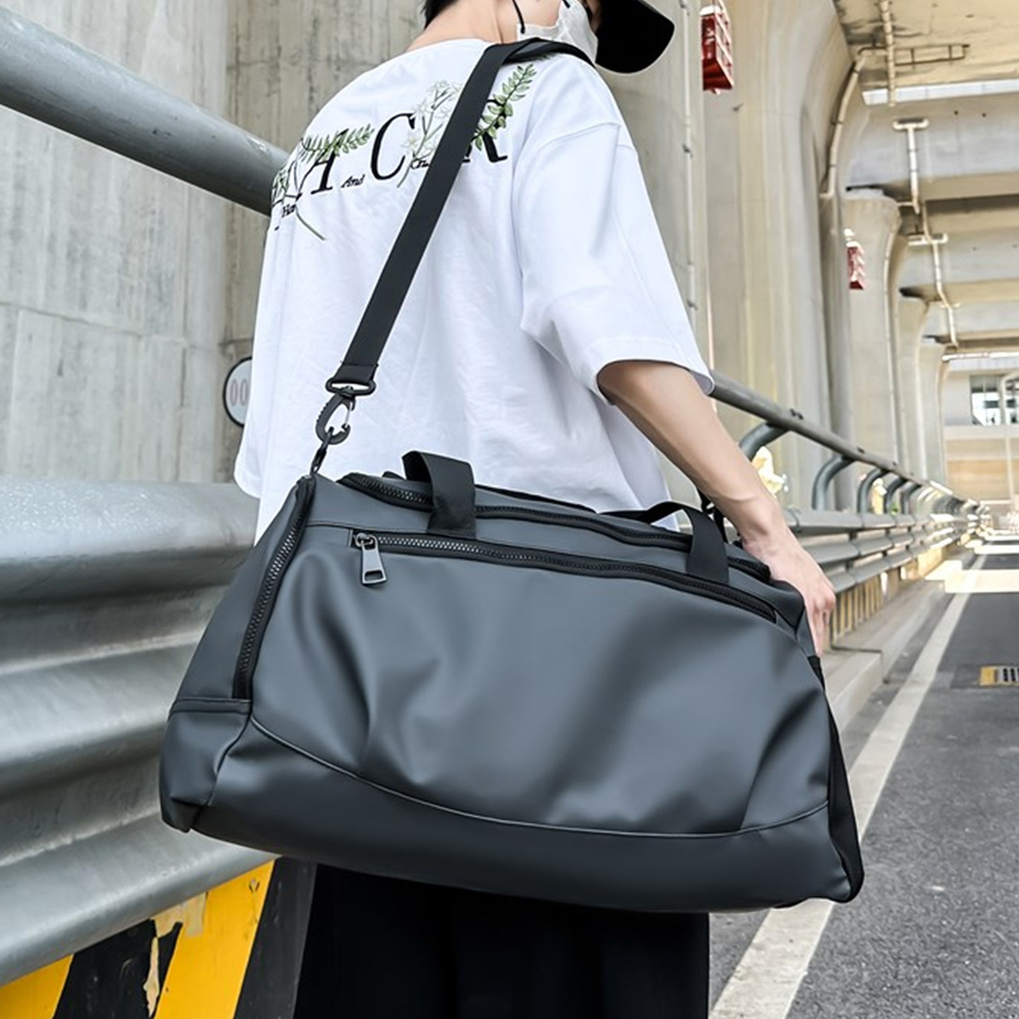 短途旅行包男大容量可放鞋轻便防水黑色行李包干湿分离运动健身包