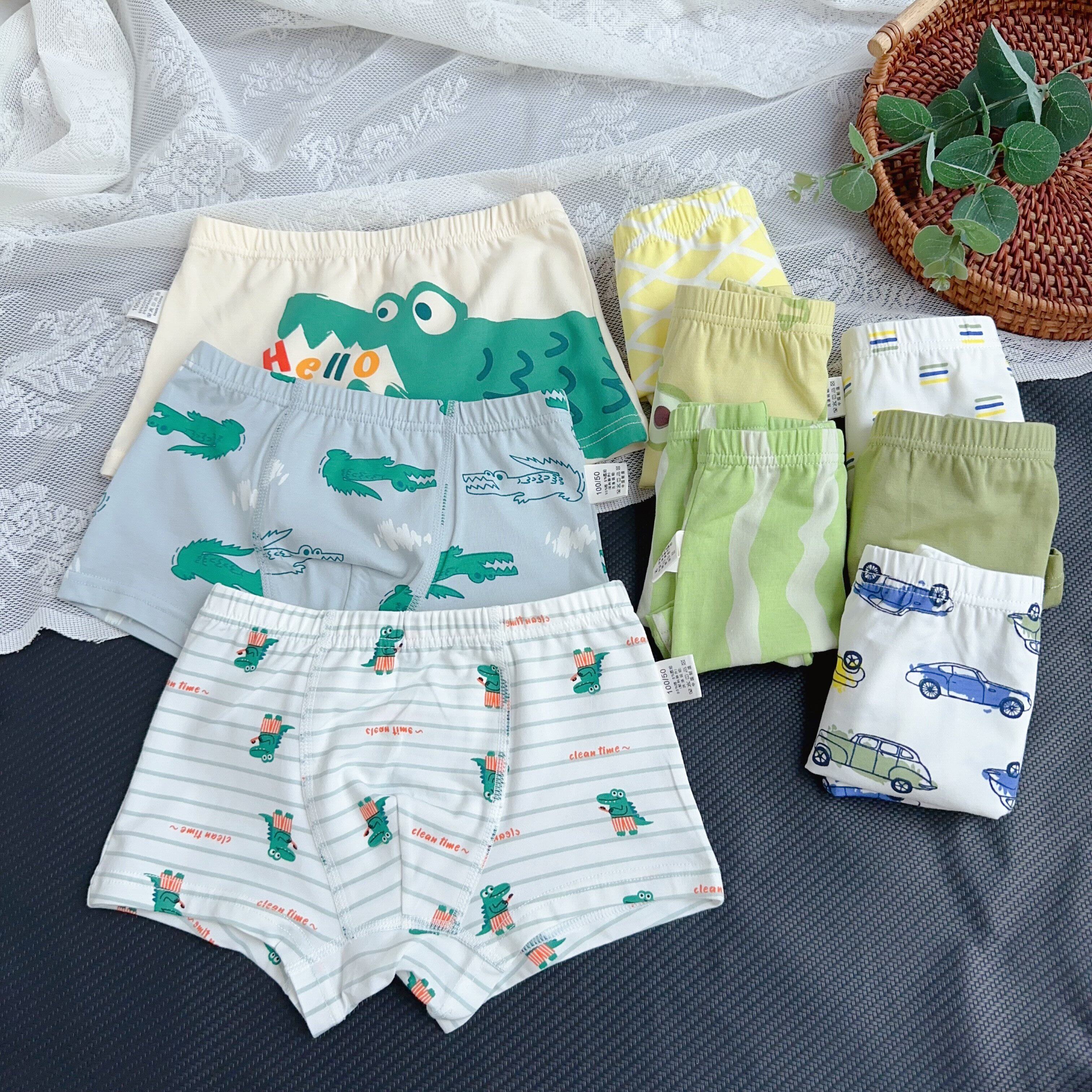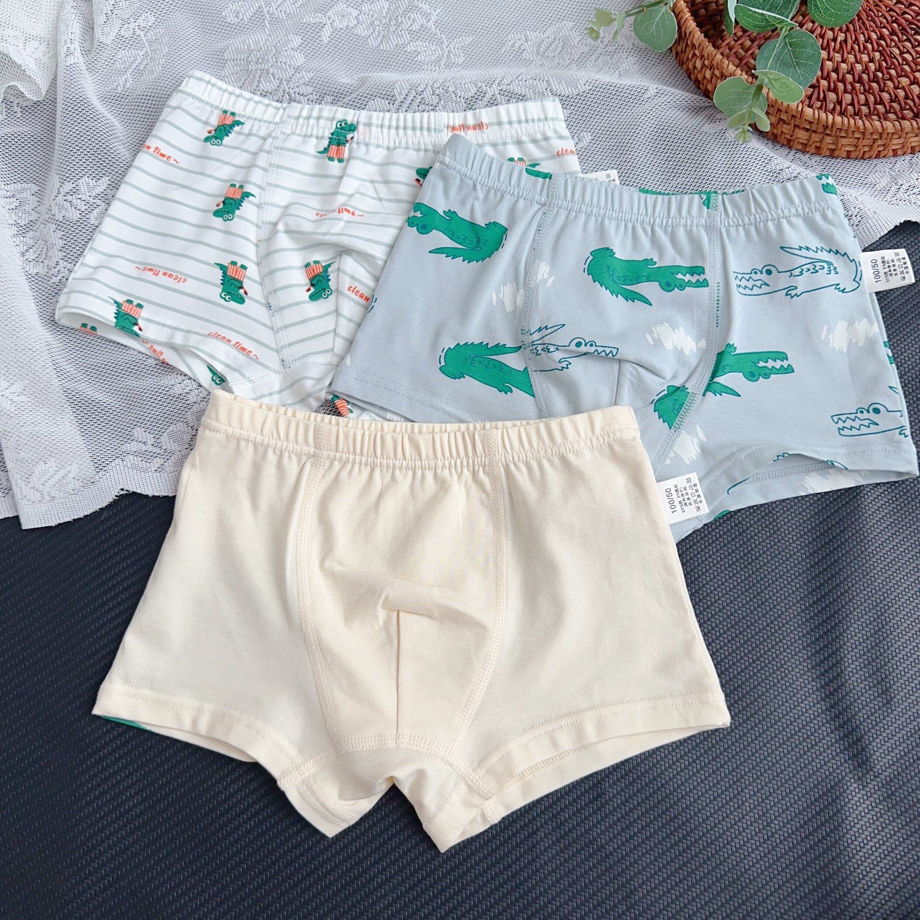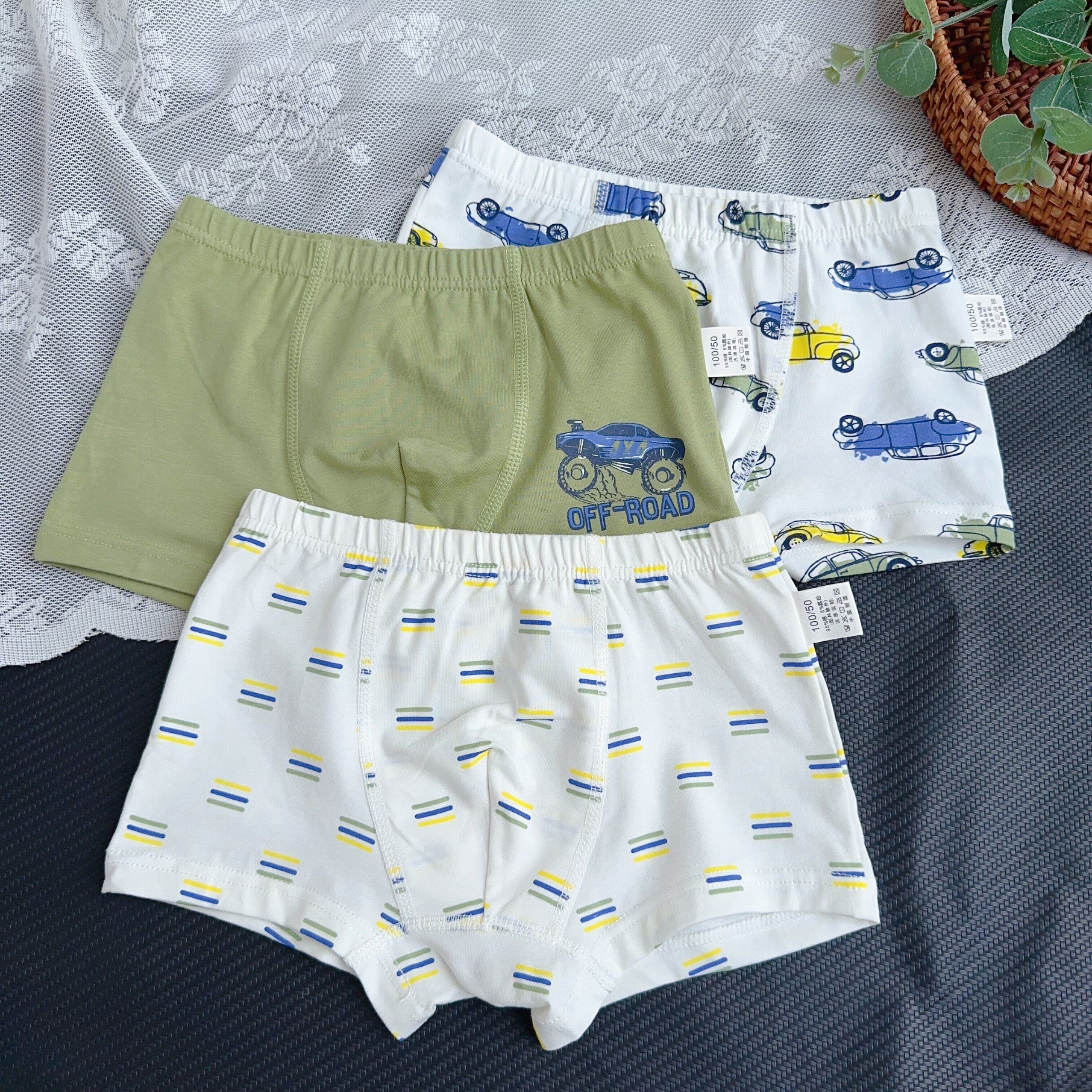100-160码 A类 纯棉弹力男童平角内裤 卡通软透气宝宝裤衩 三条装