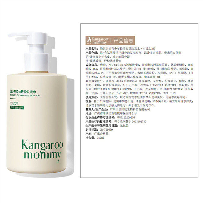 袋鼠妈妈青少年控油蓬松柔顺青春期专研男孩女孩洗发水
