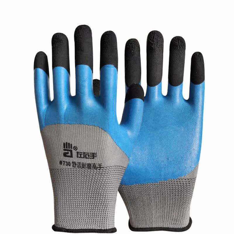 正品左右手劳保手套加厚大耐磨用防滑水乳胶弹力透气王加强指工地