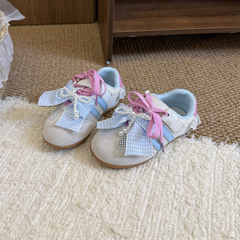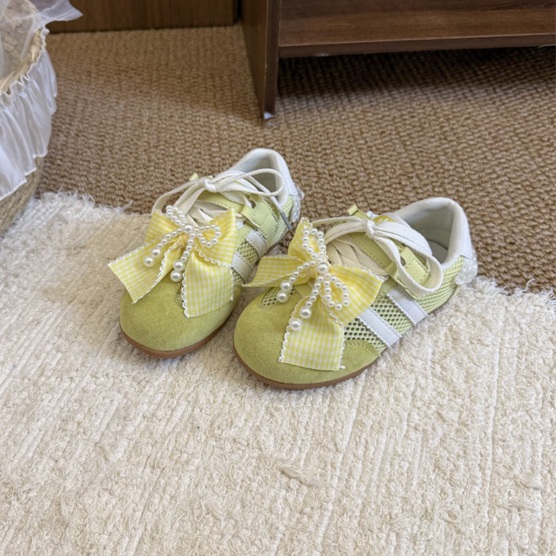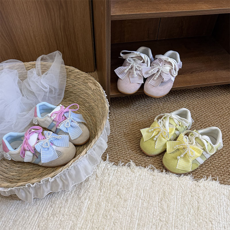 薄款夏款蝴蝶结小女孩女生阿甘德训运动黄色儿童鞋女童单网面透气