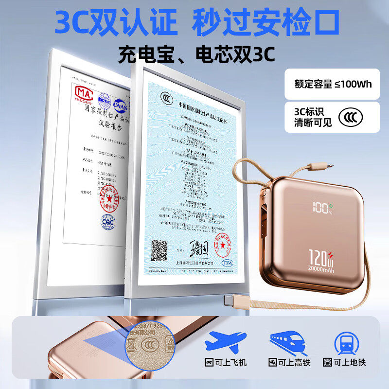 311线报网描述:20000毫安120W快充|新国标3C认证|可上飞机