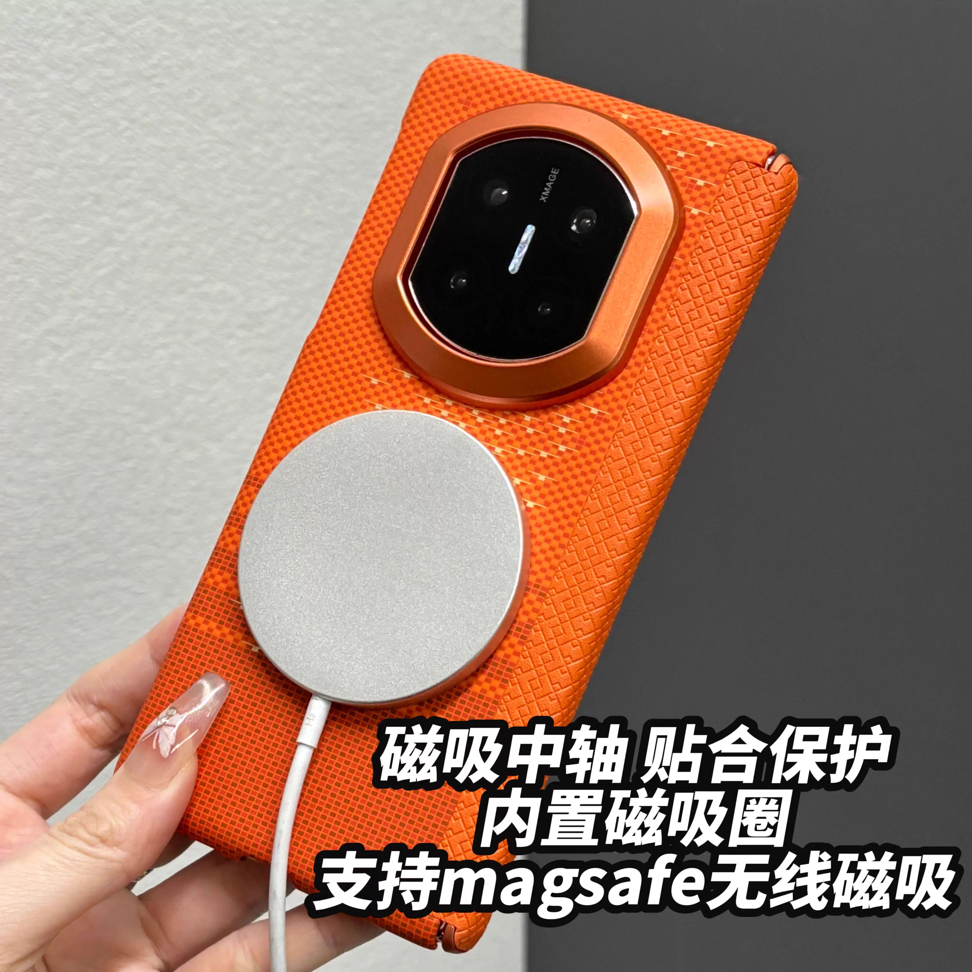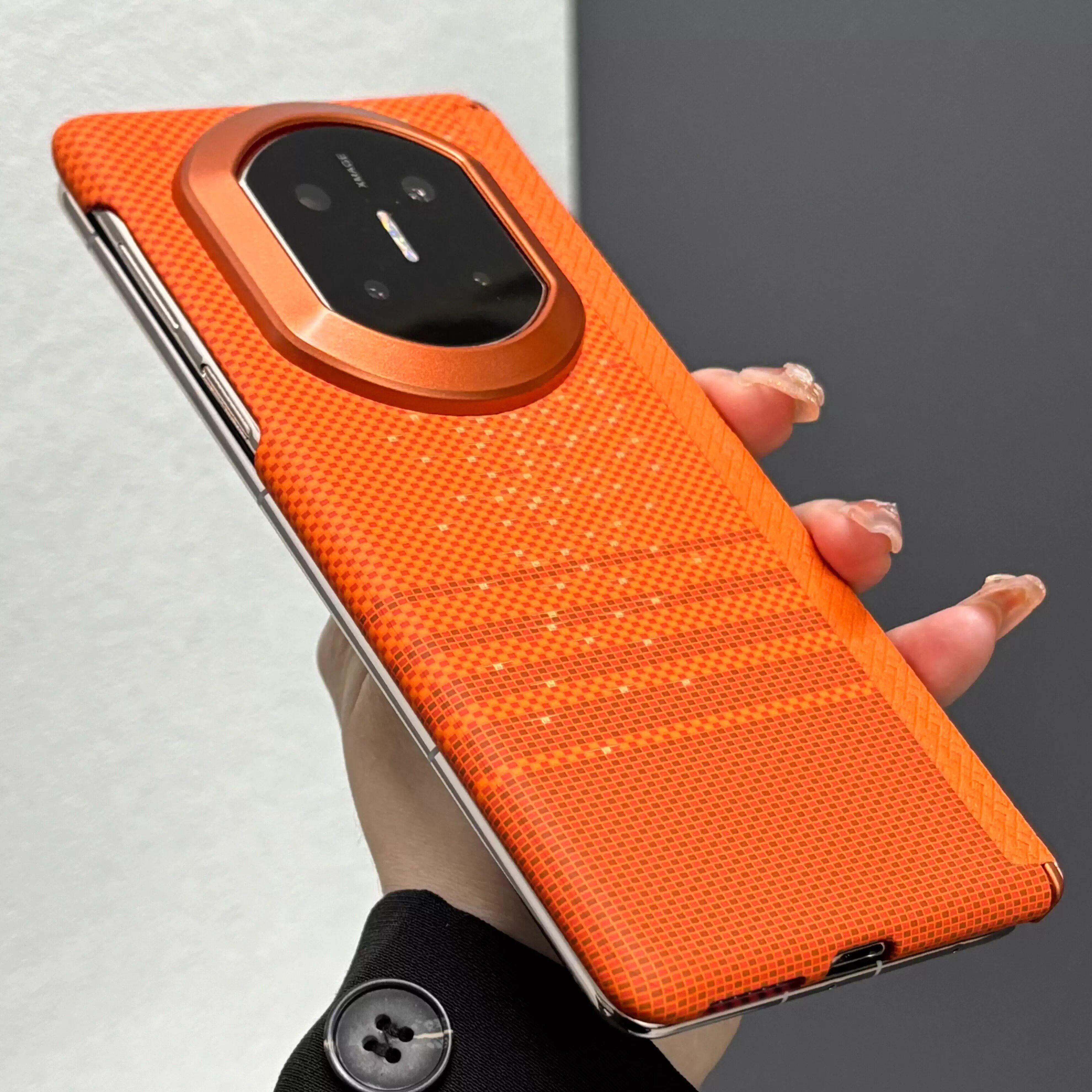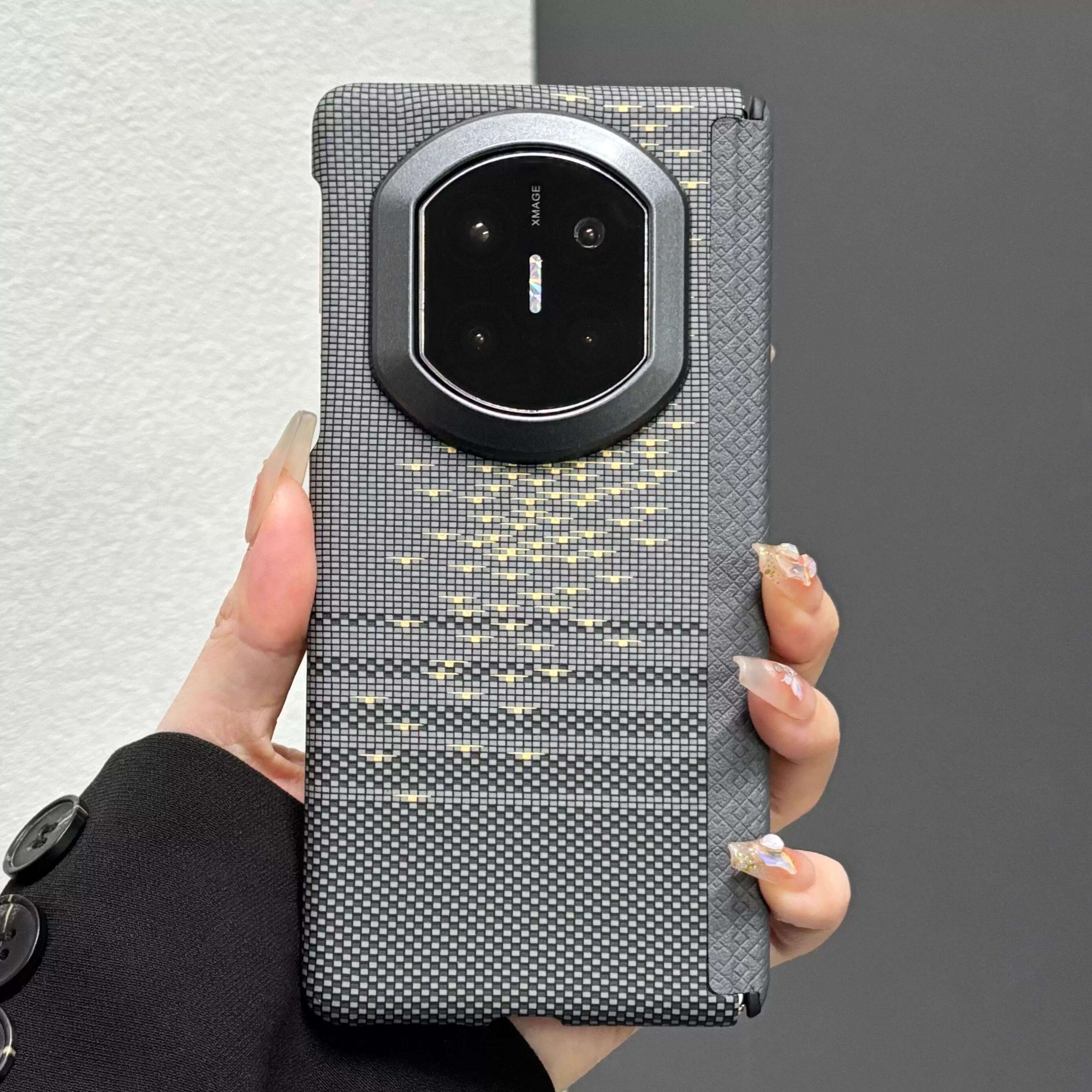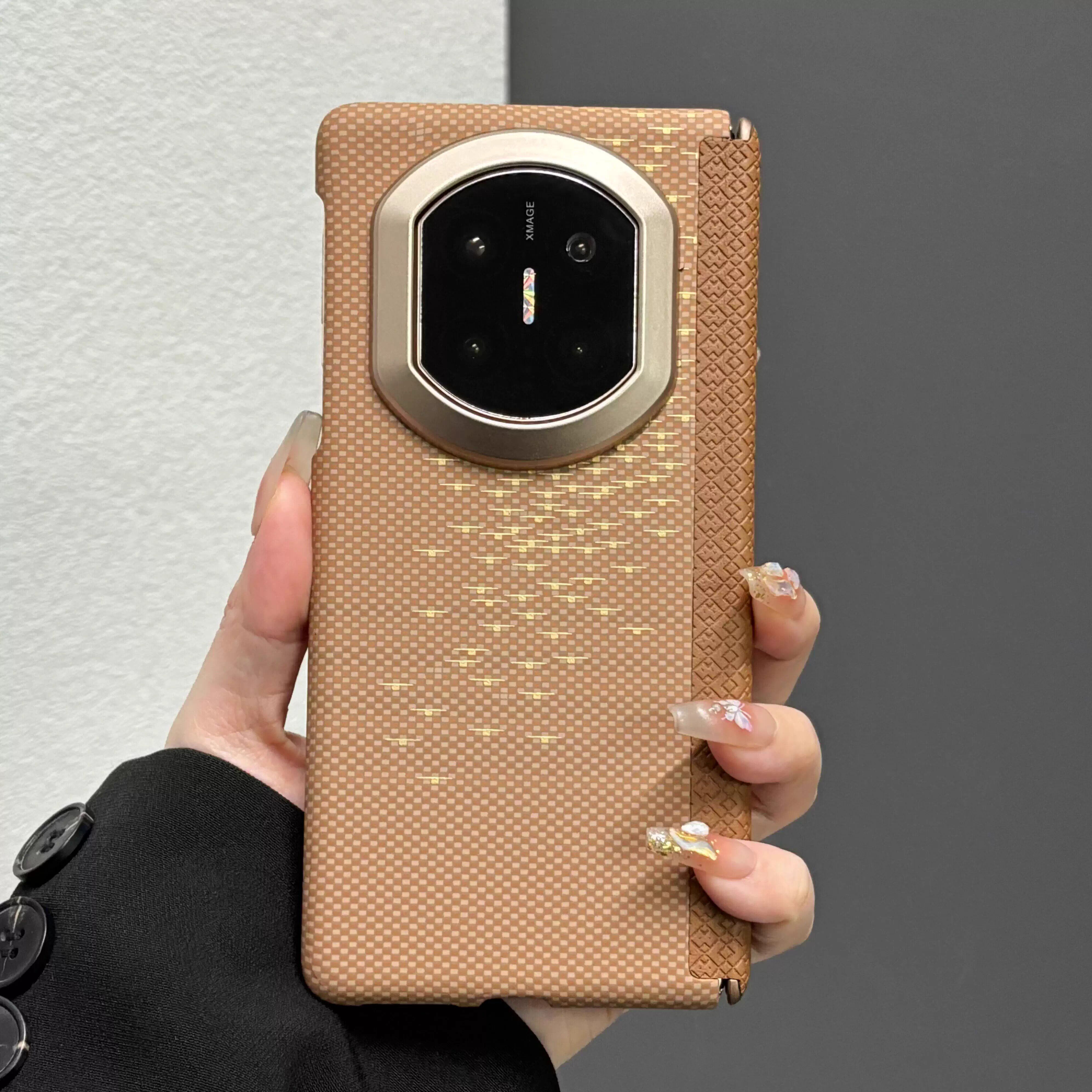 适用华为matex7手机壳高级感商务简约男士超薄新款磨砂中轴铰链全包x6防摔碳纤维纹保护套x5时尚个性创意外壳