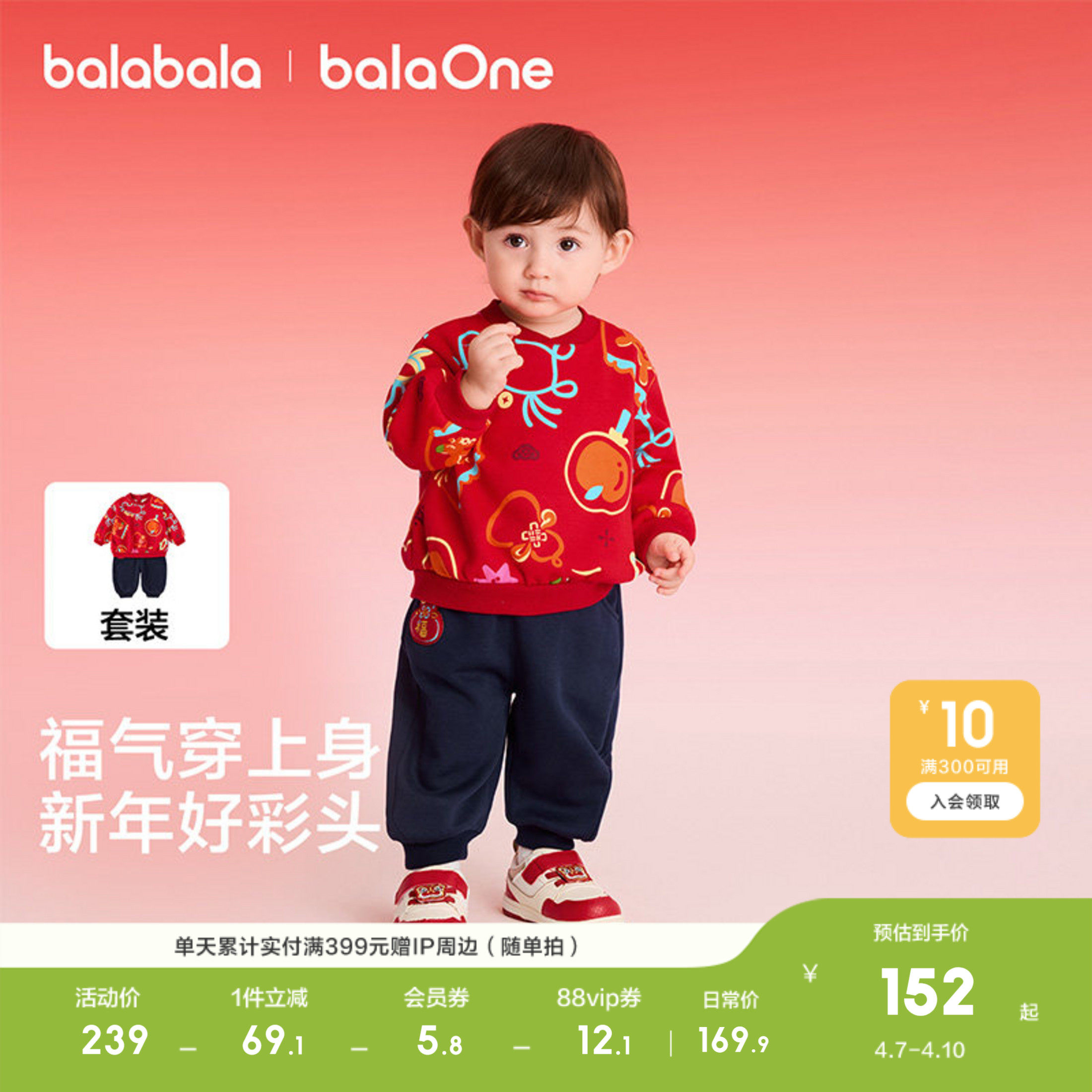 【balaOne】巴拉巴拉儿童卫衣套装男童女童装春季两件套纯棉透气