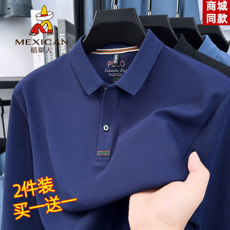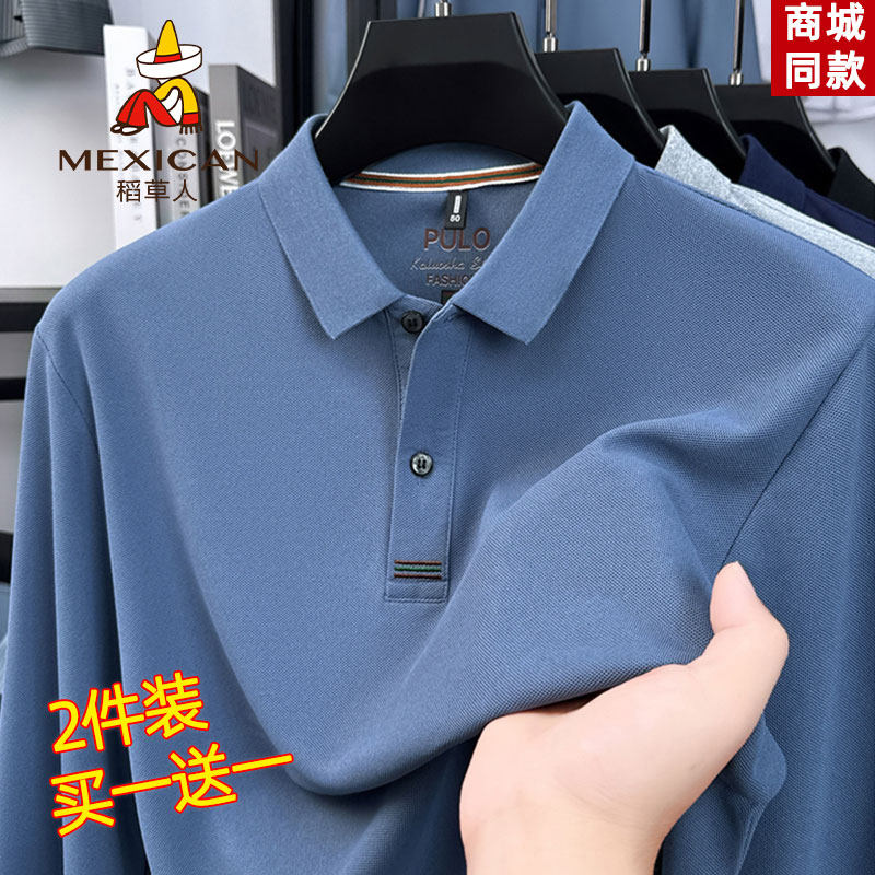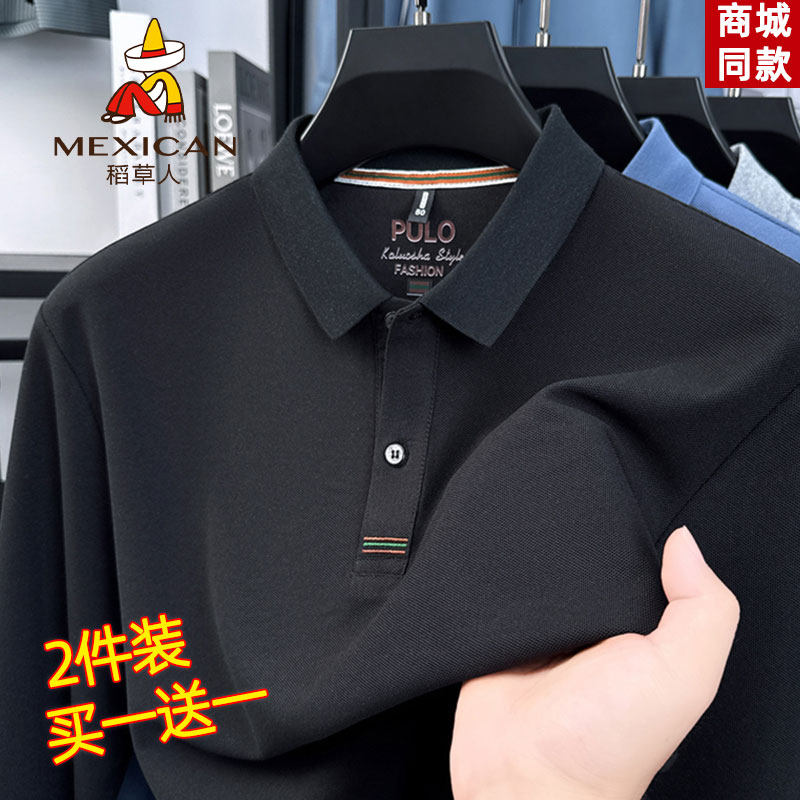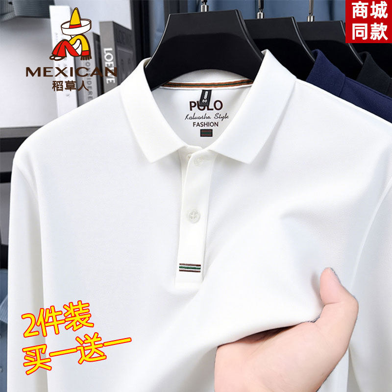 稻草人新款春秋季polo衫男士长袖t恤翻领休闲商务打底衫上衣男款