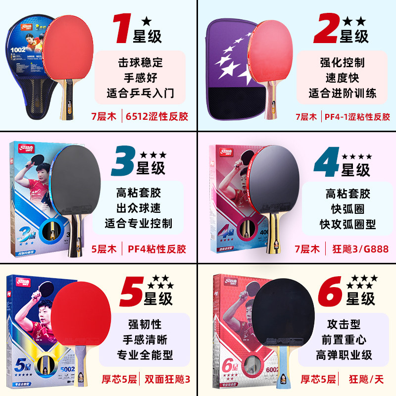 乒乓球拍红双喜一二三四星专业级五星六星兵兵球拍单拍套装横官方