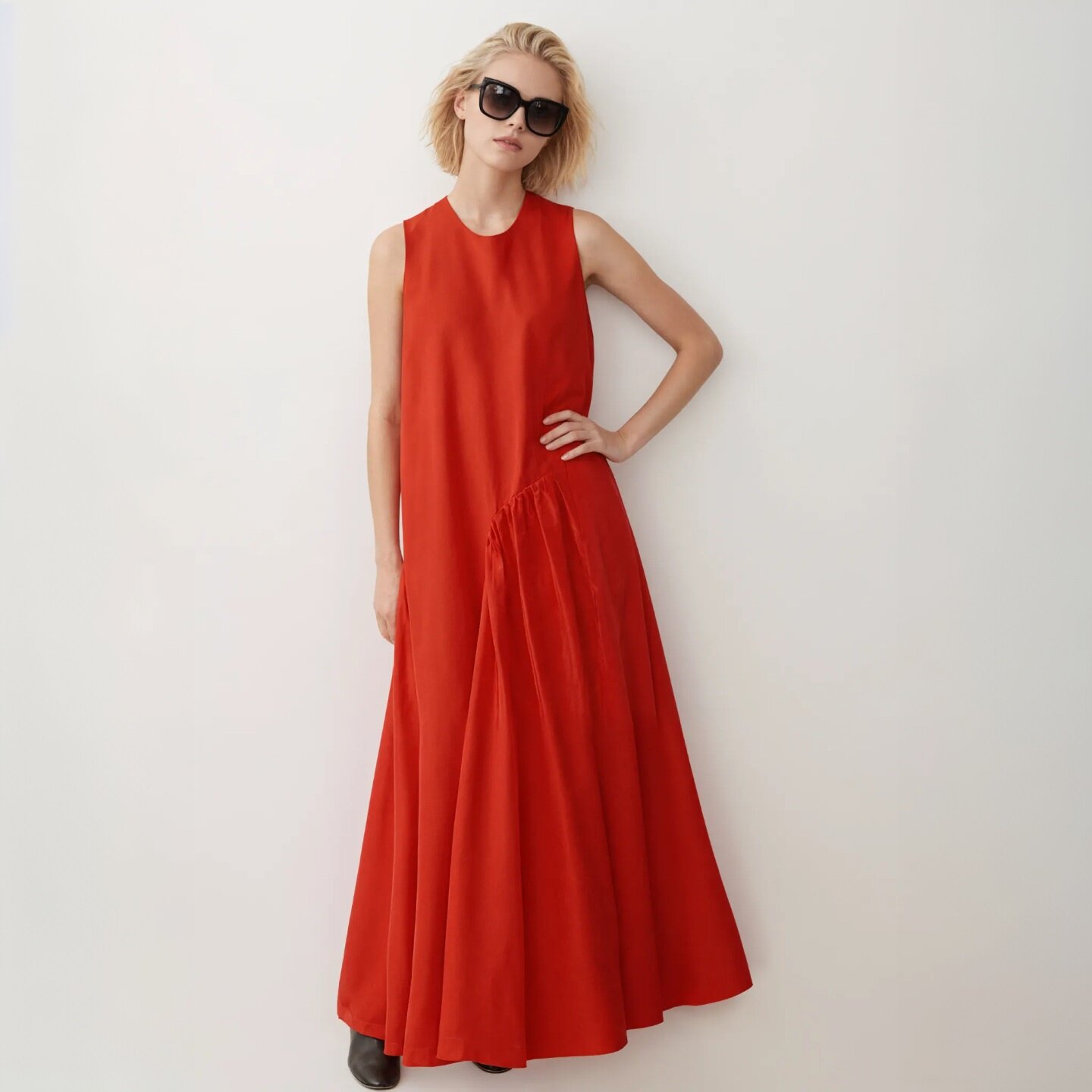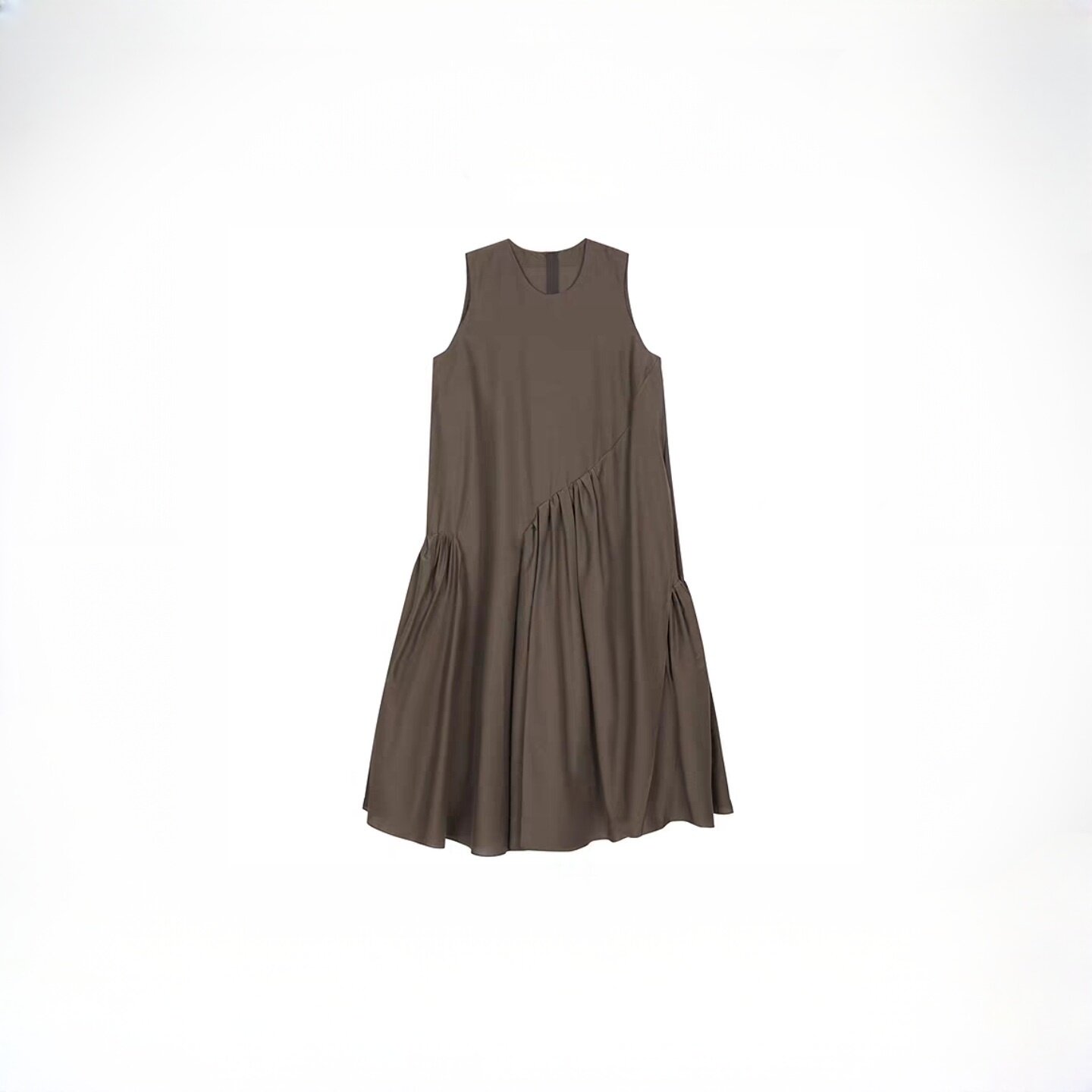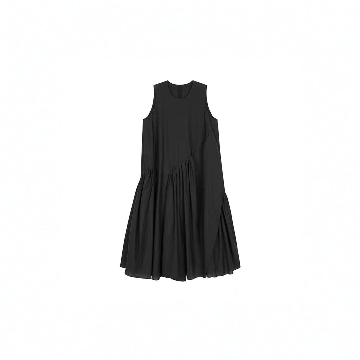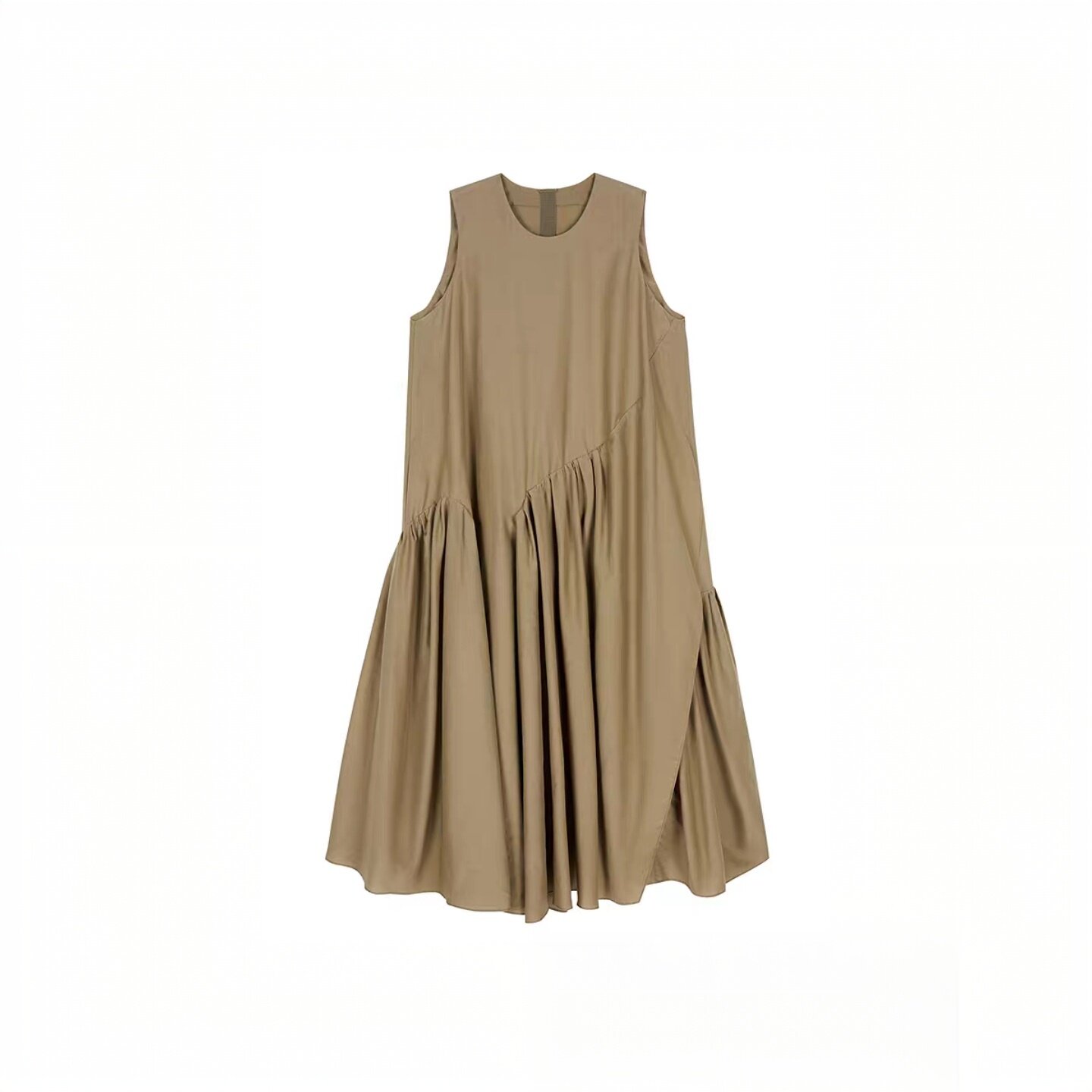 2026春夏日常舒适设计感显瘦褶皱无袖圆领宽松A型休闲长款连衣裙