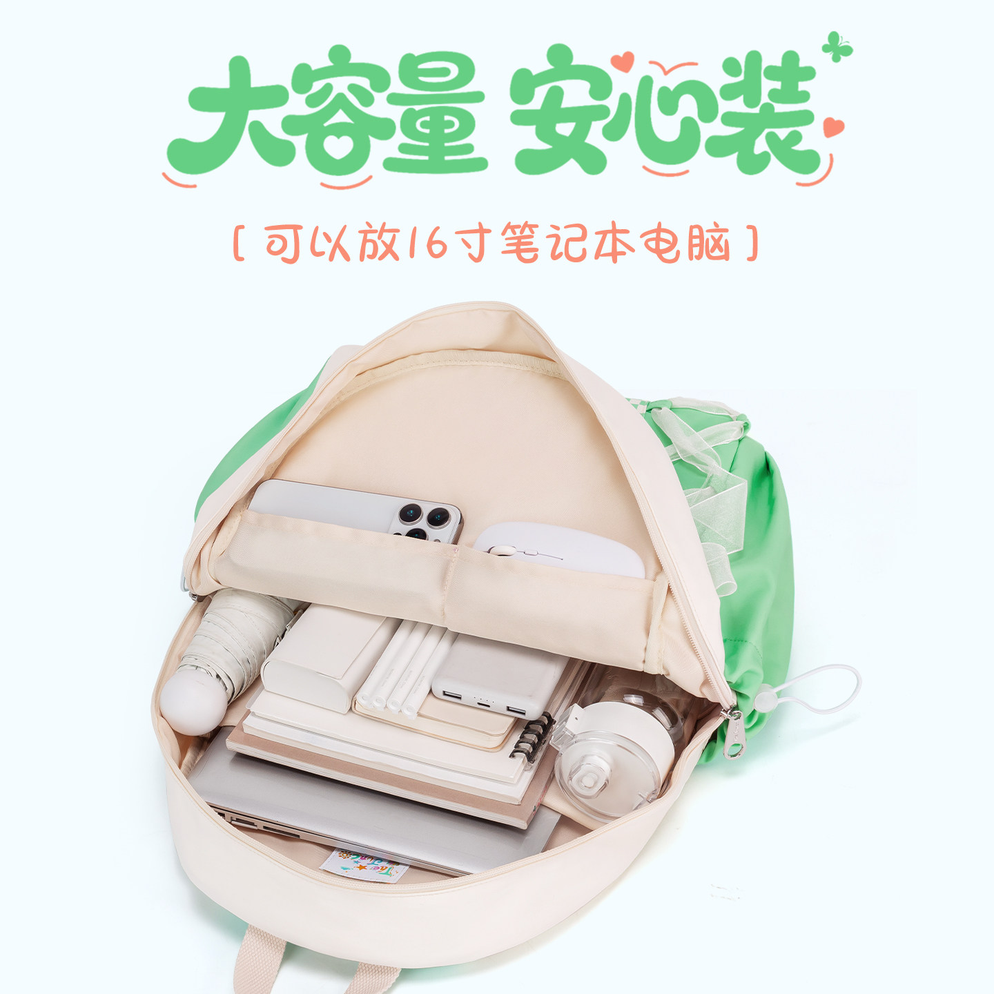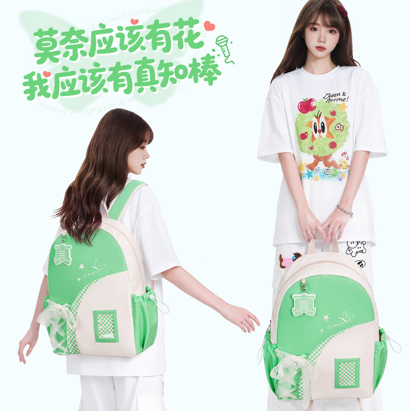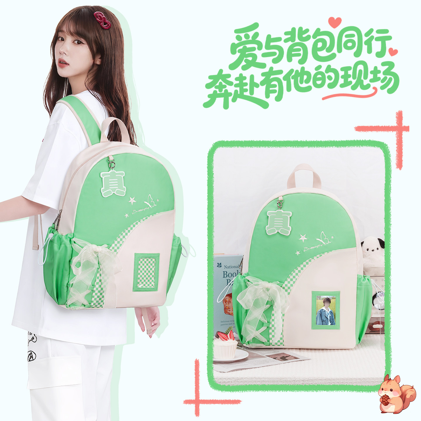 张真源周边双肩包女生轻便大容量旅行背包初中生日常通勤绿色书包