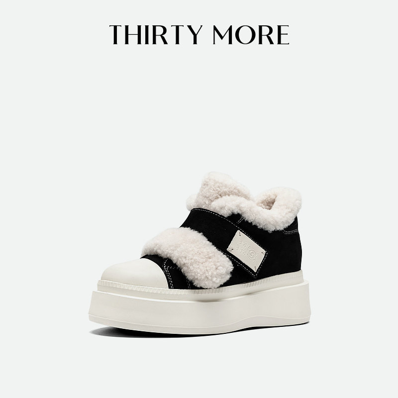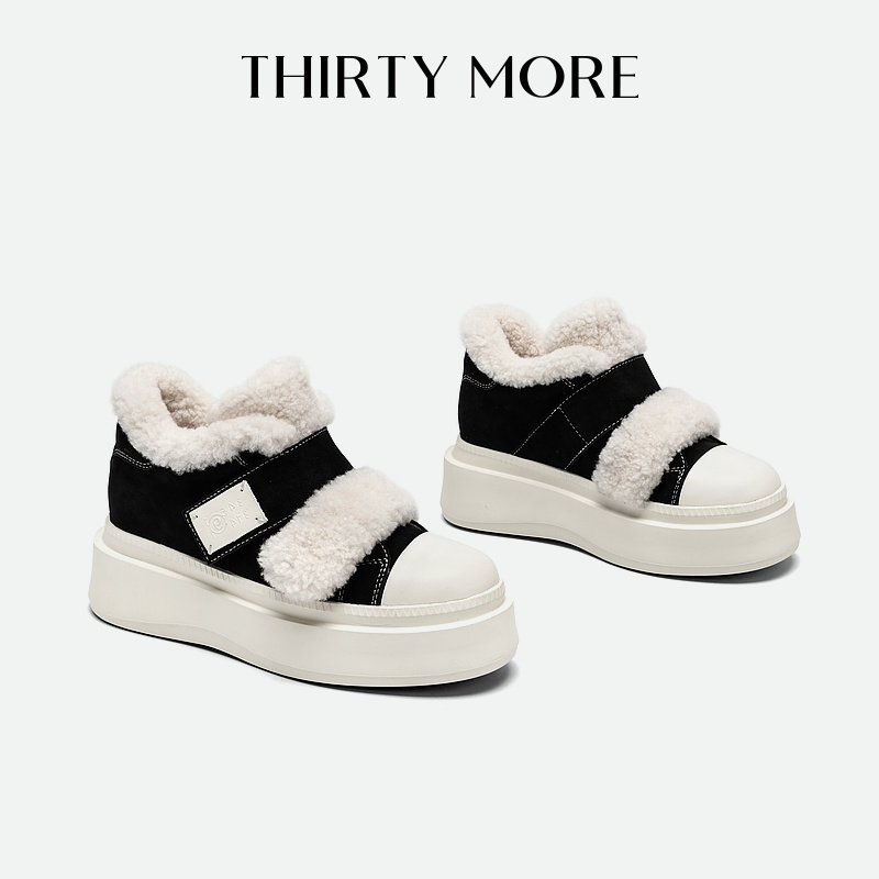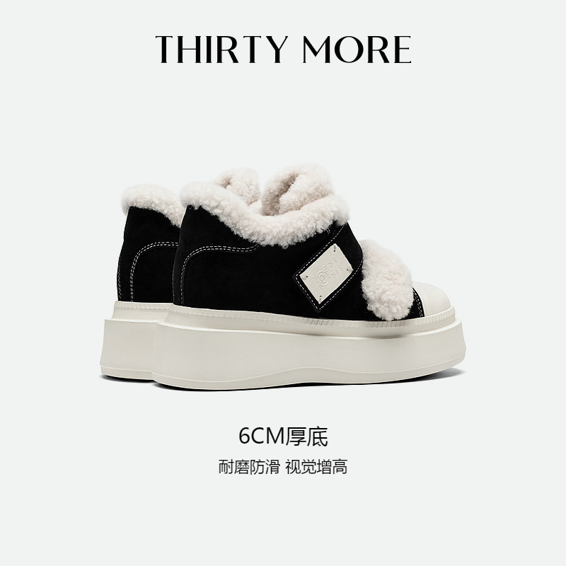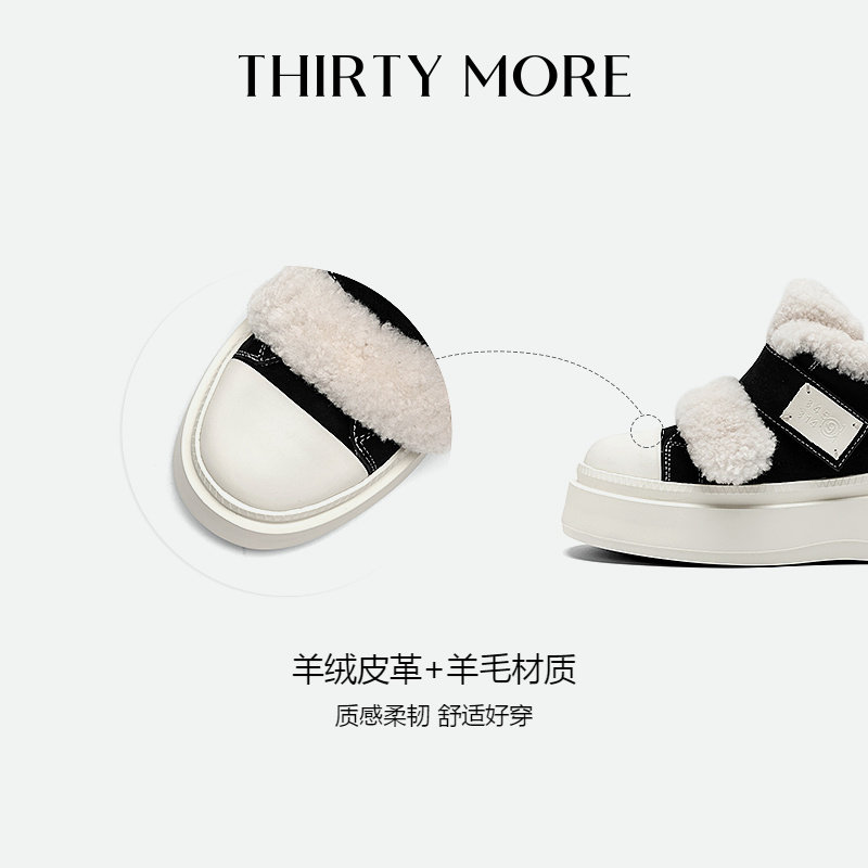 Thirty More毛毛棉鞋女款冬季新款魔术贴休闲鞋加绒厚底增高板鞋