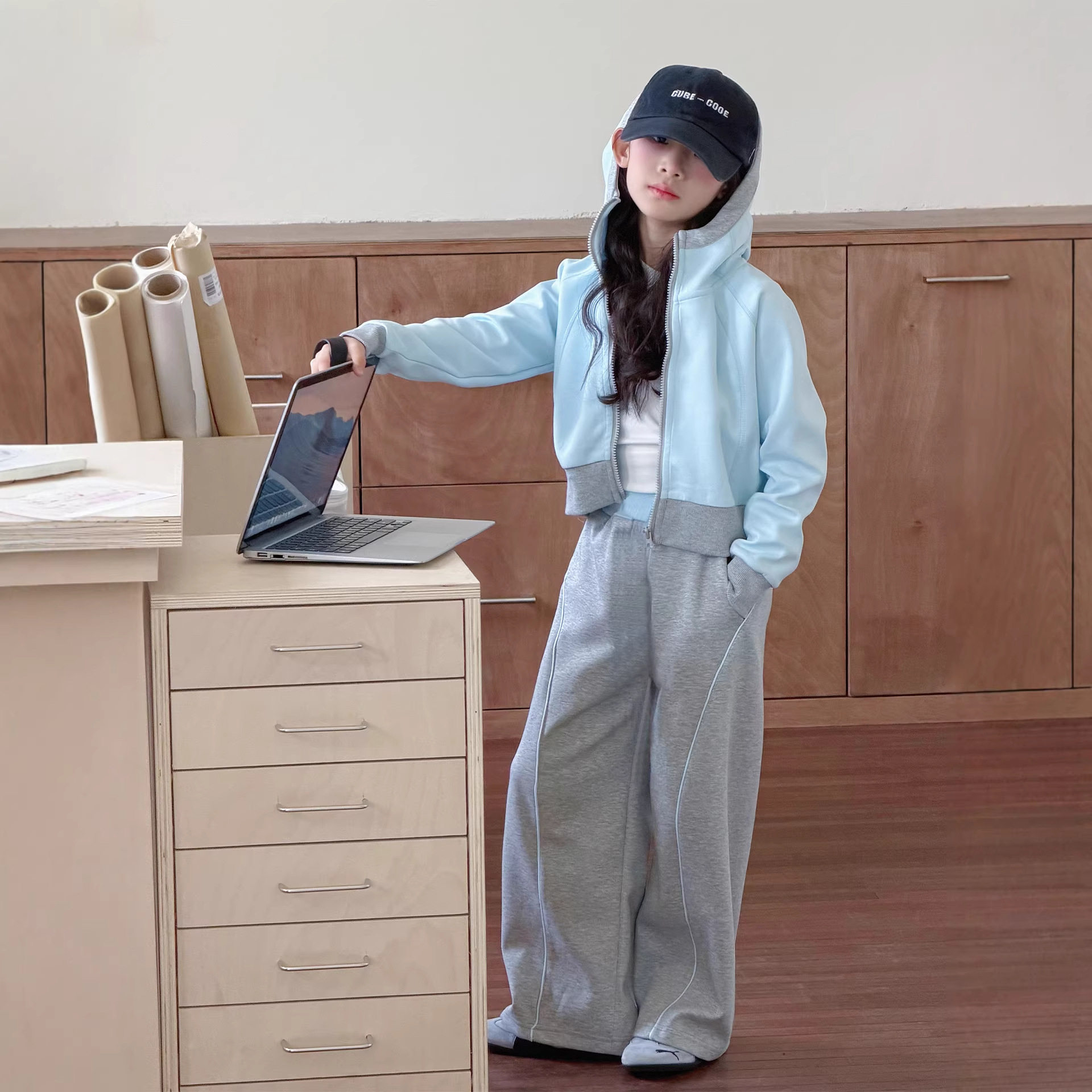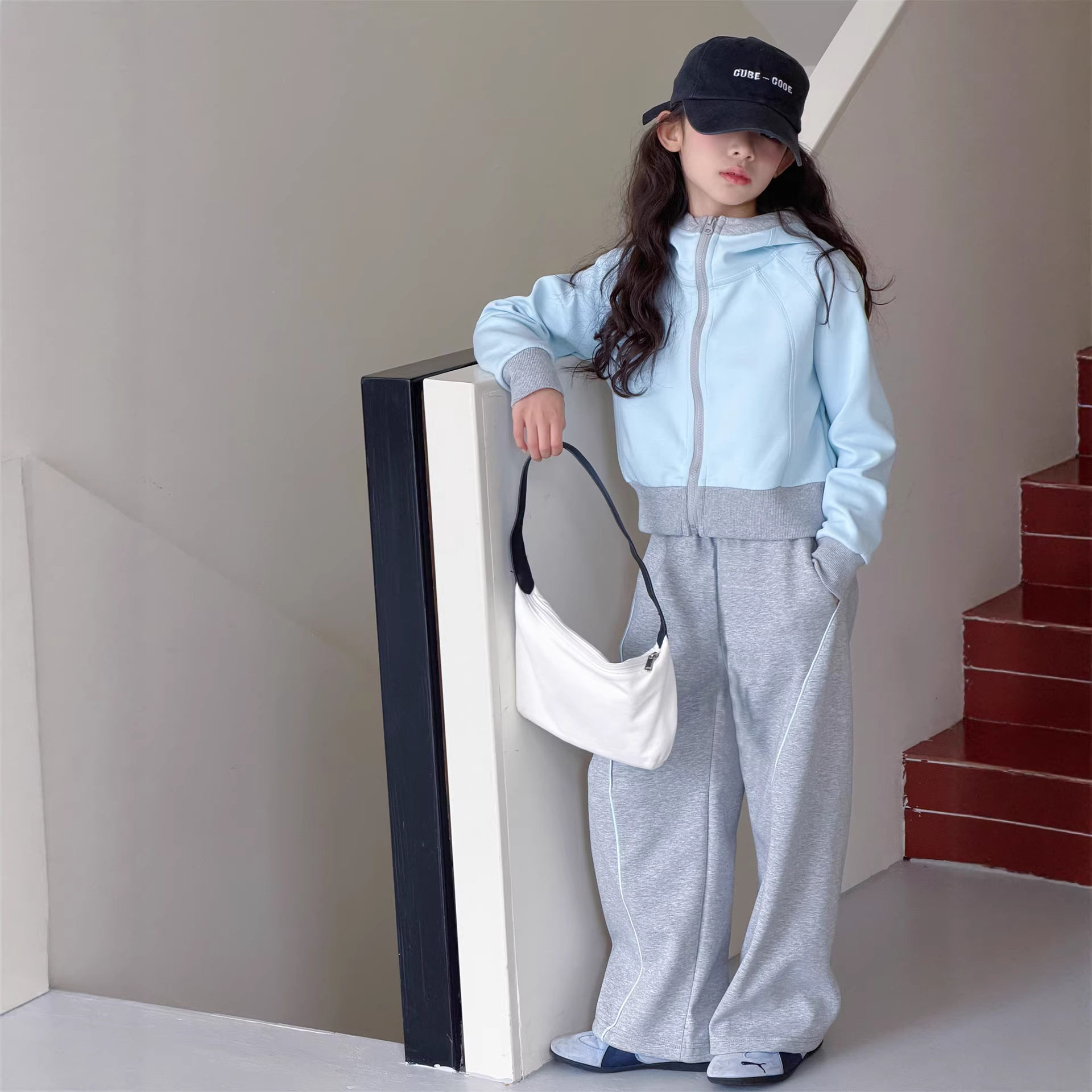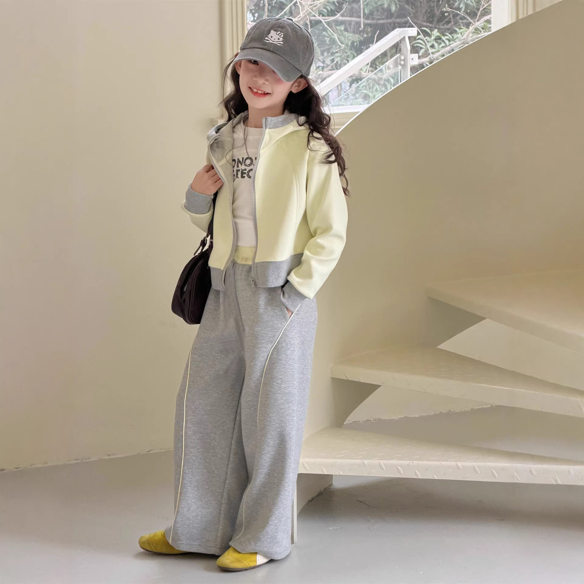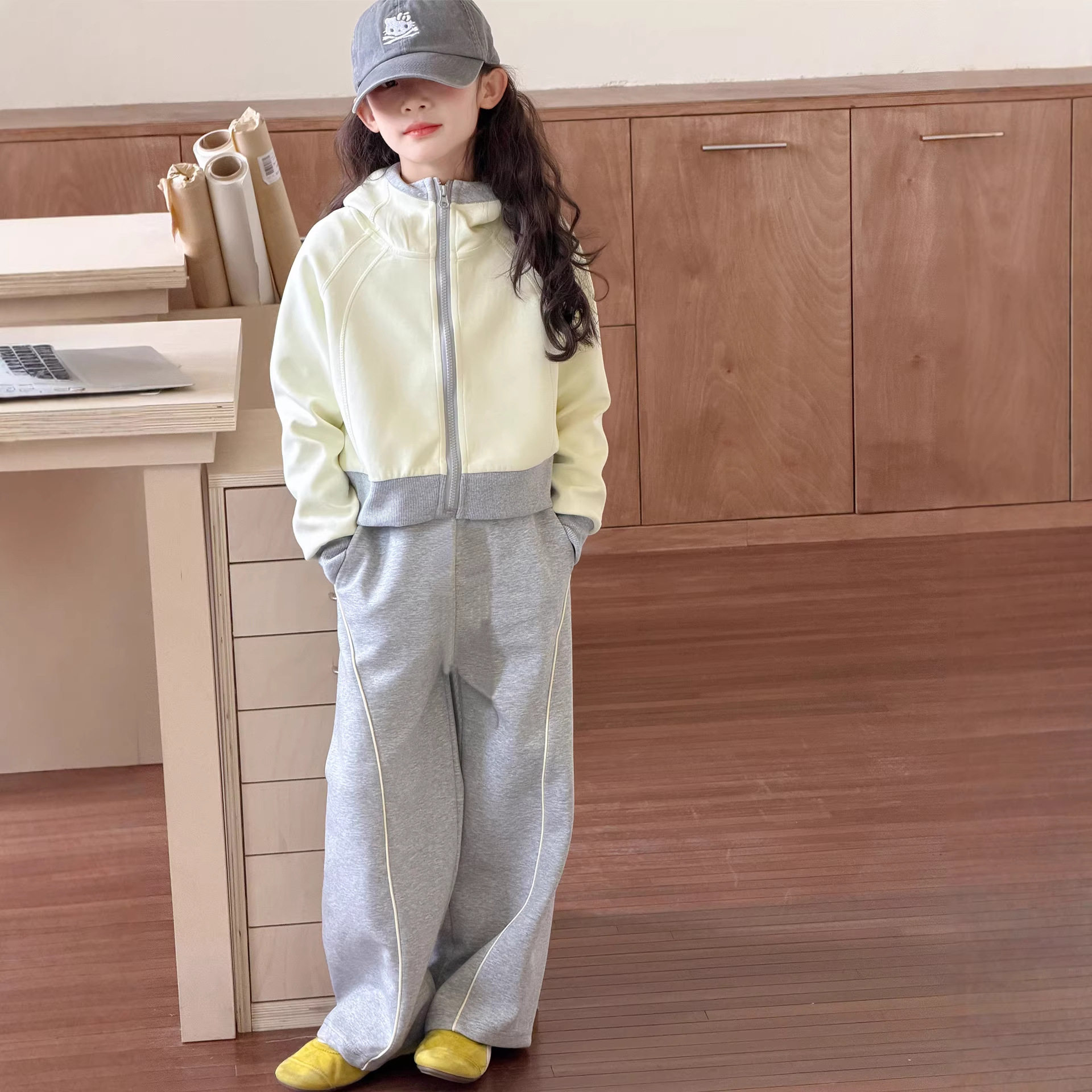 女童春装套装2026新款儿童时髦洋气春秋大童连帽外套休闲裤两件套