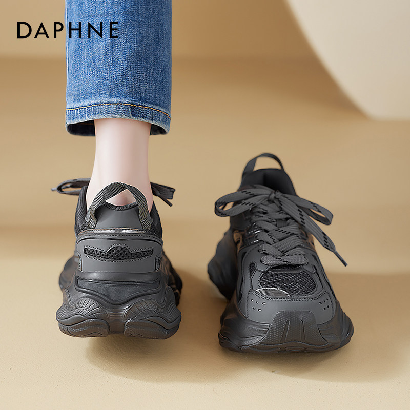 达芙妮厚底黑色老爹鞋女款2026春季新款增高透气女鞋子休闲运动鞋