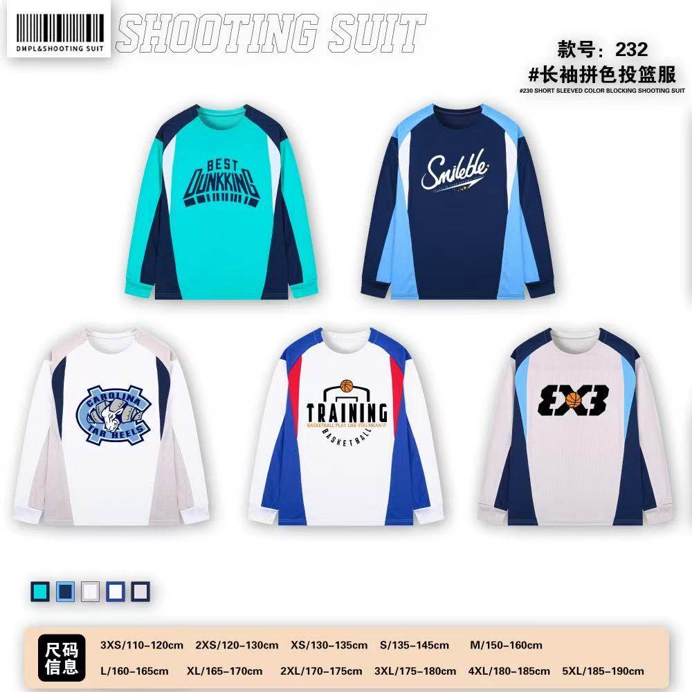 篮球服速干投篮服长袖男定制出场服T恤美式飞盘服儿童训练服运动