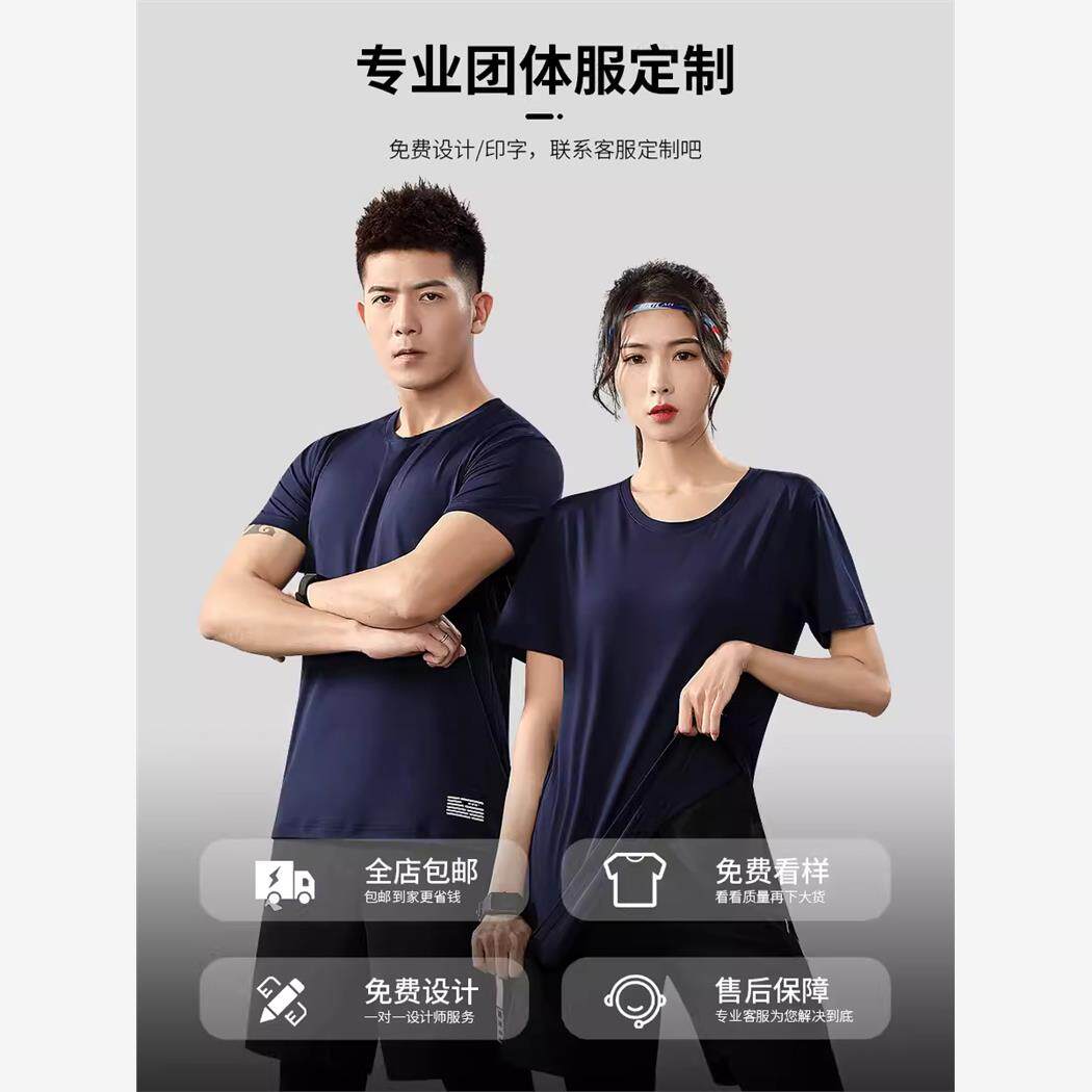 冰丝速干t恤定制工作服印字logo圆领马拉松广告文化衫外贸选举衫