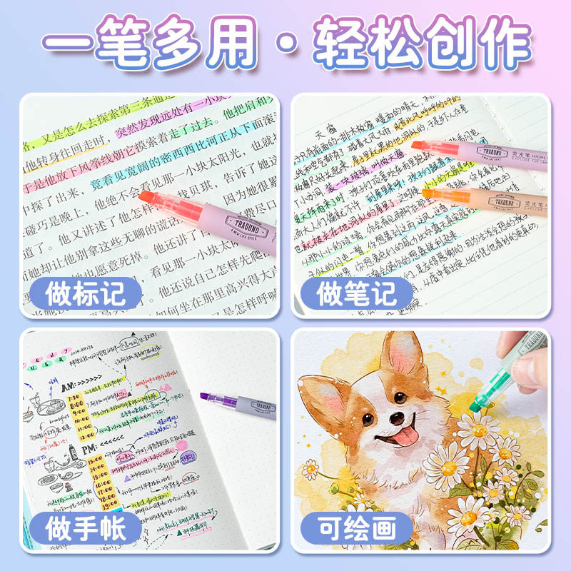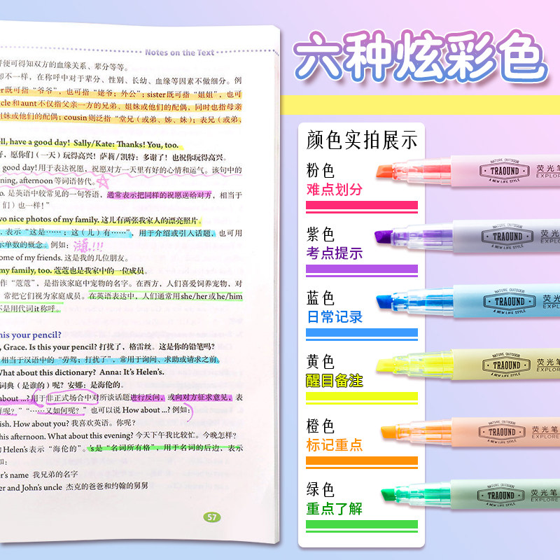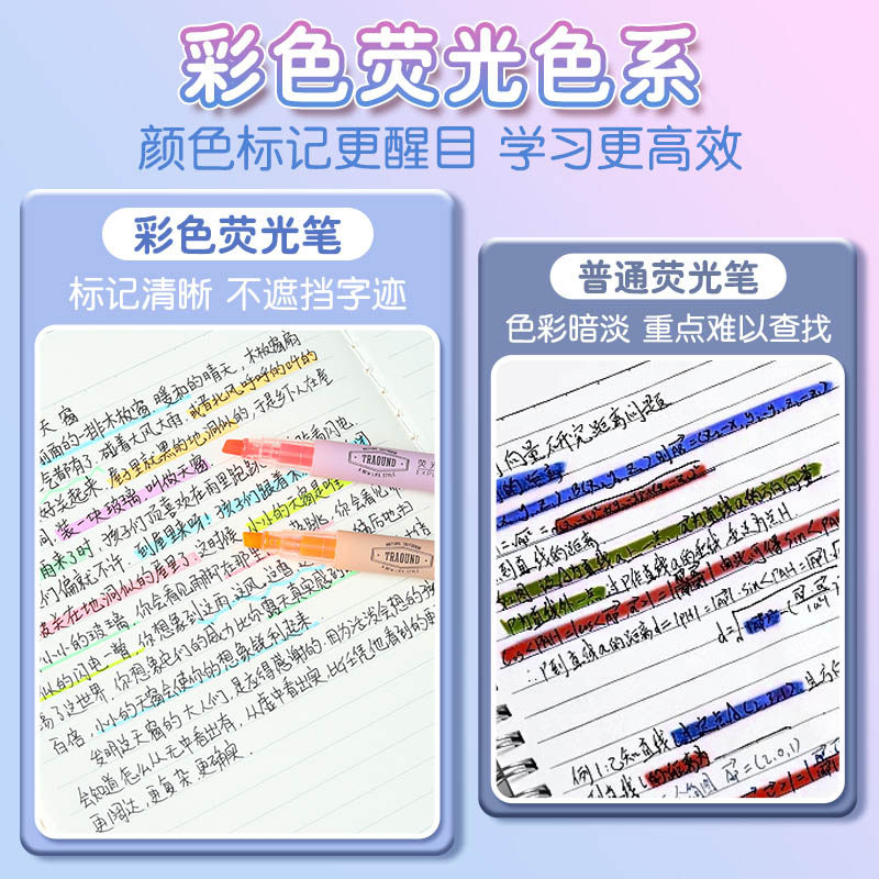 得力荧光笔小学生用彩色记号笔划重点标记笔斜头初中生做笔记整理手帐专用手抄报黄色绿色护眼醒目多色银光笔