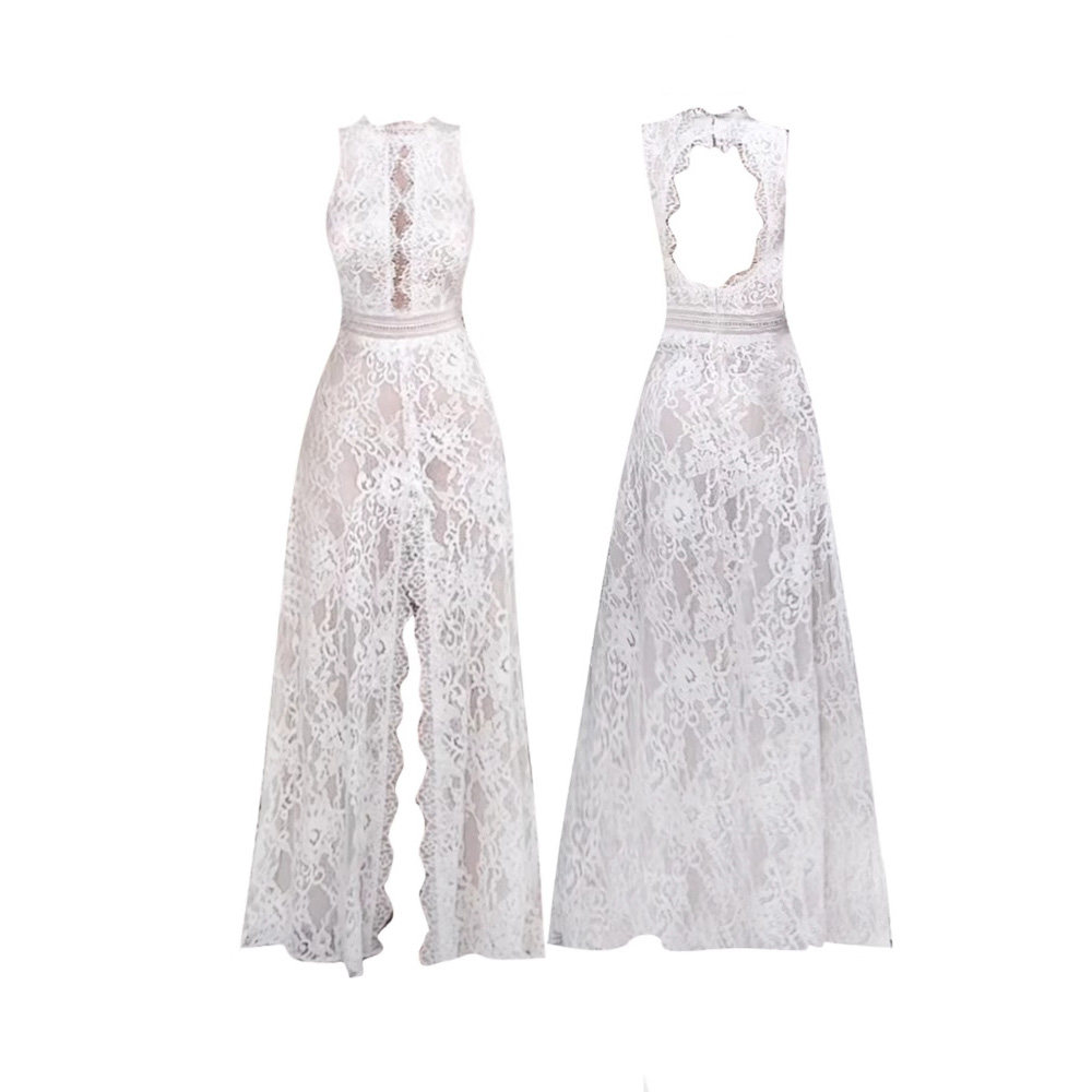 时尚高级感轻奢性感名媛风新款掐腰显瘦开叉长裙微胖蕾丝连衣裙