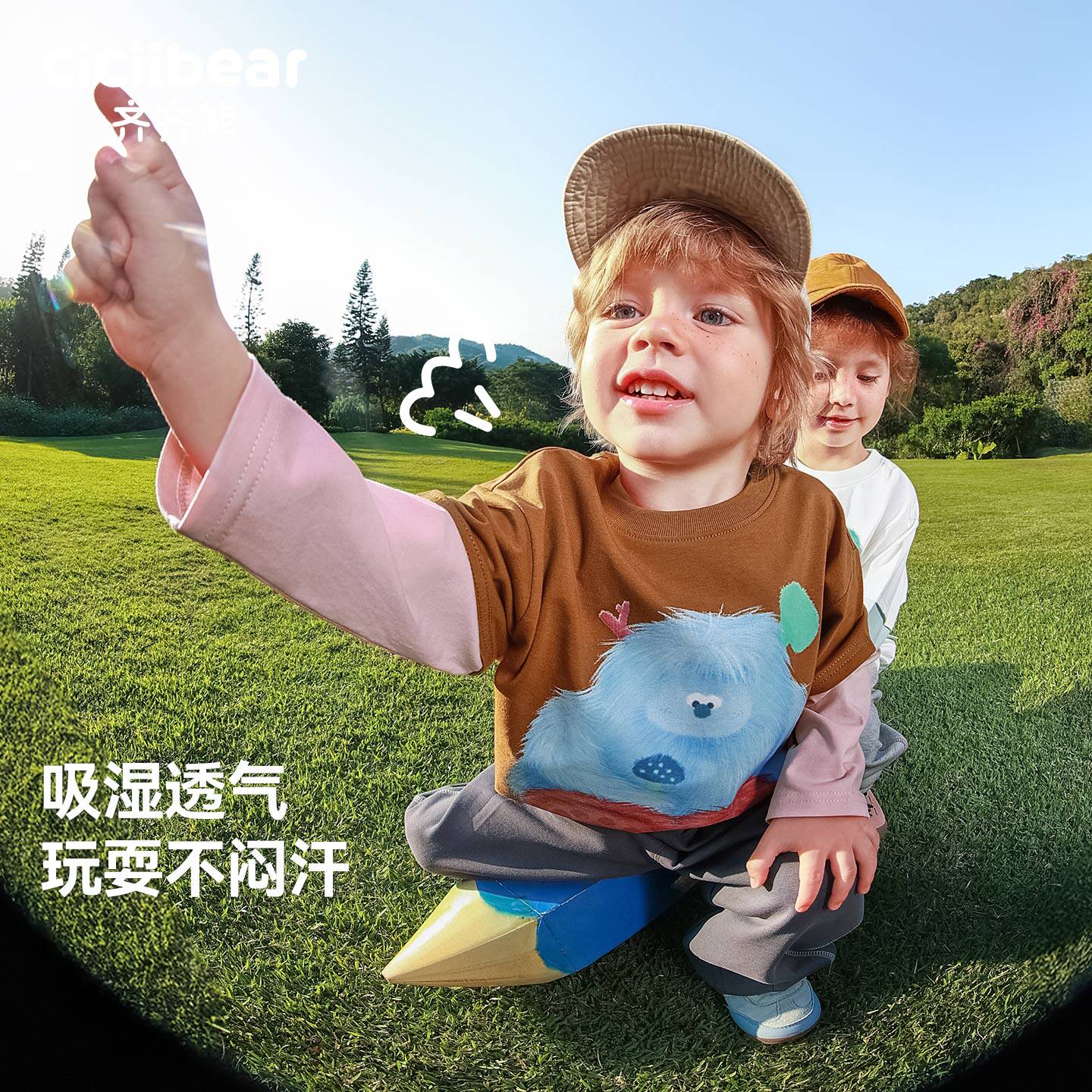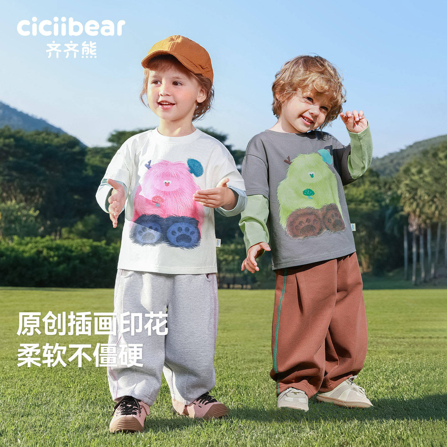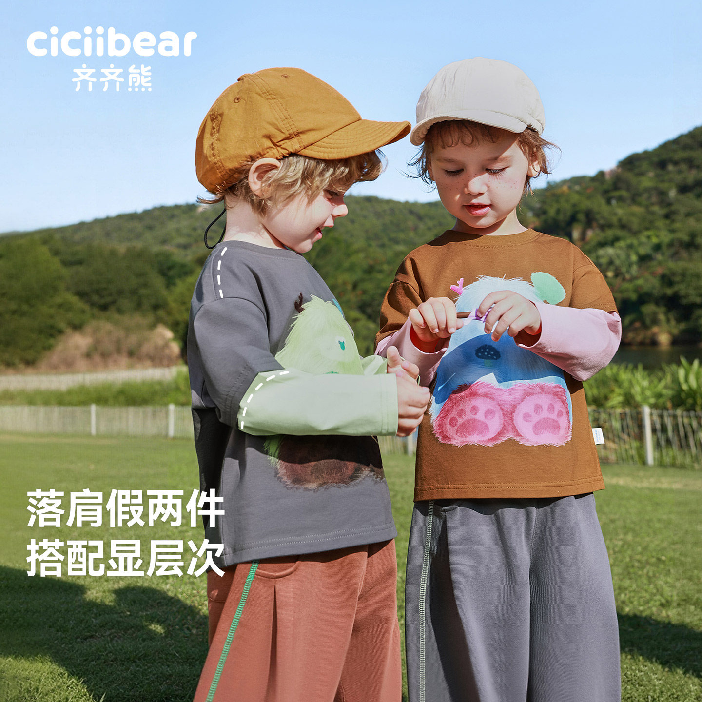 [10A抗菌]齐齐熊宝宝t恤长袖春款男童假两件儿童上衣2026新款户外