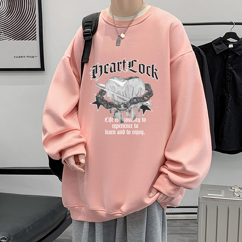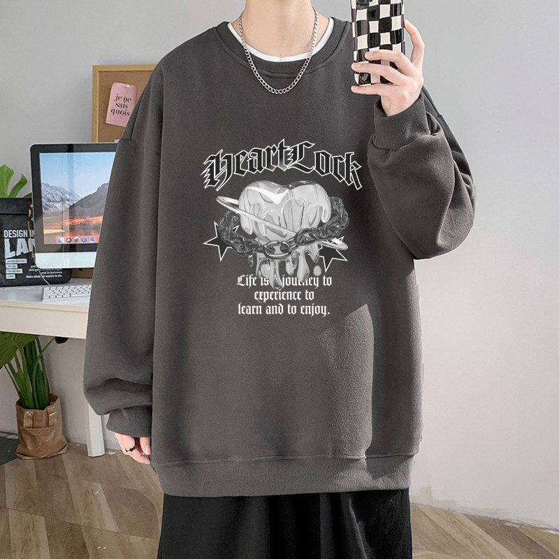 冬季青少年男生加绒加厚卫衣不带帽男高中初中学生圆领保暖秋冬款