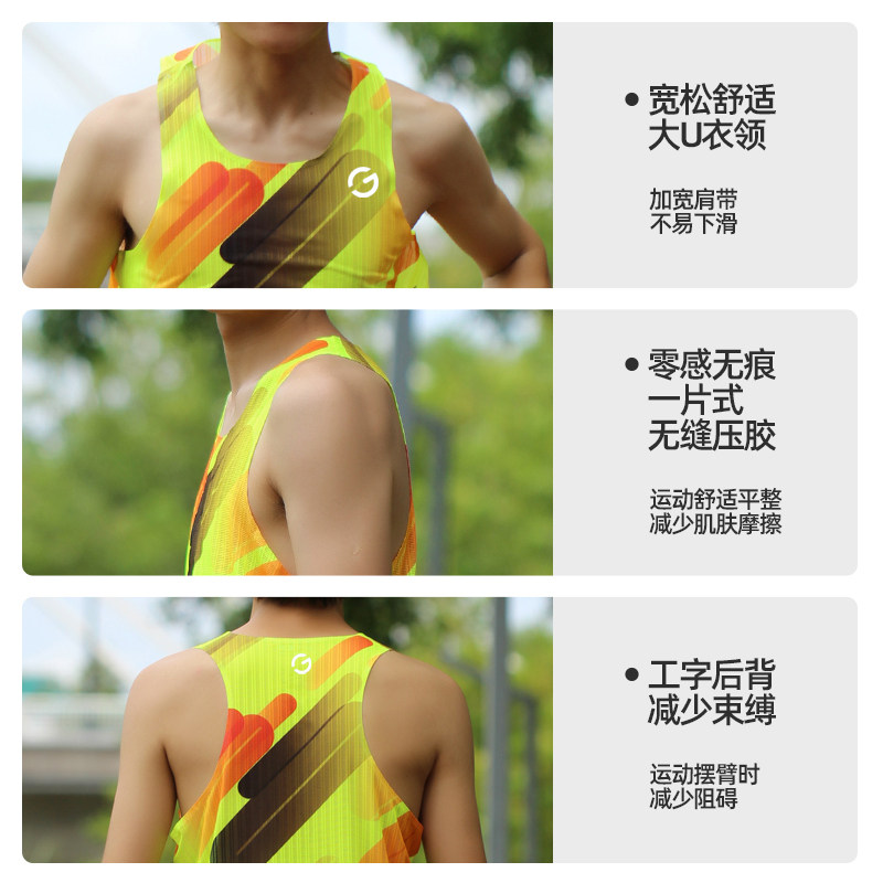 橙义家跑步背心男专业马拉松速干竞速T恤篮球田径健身训练服上衣