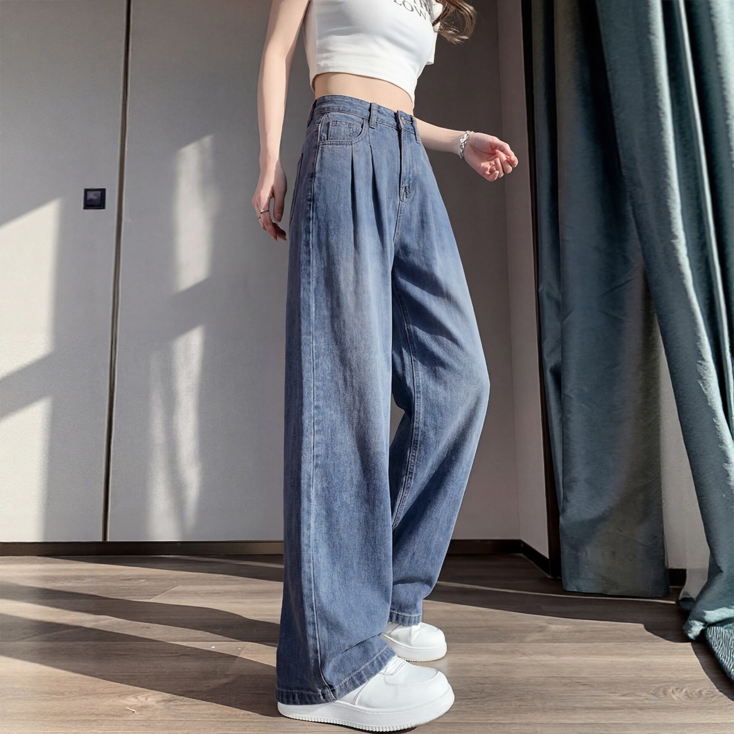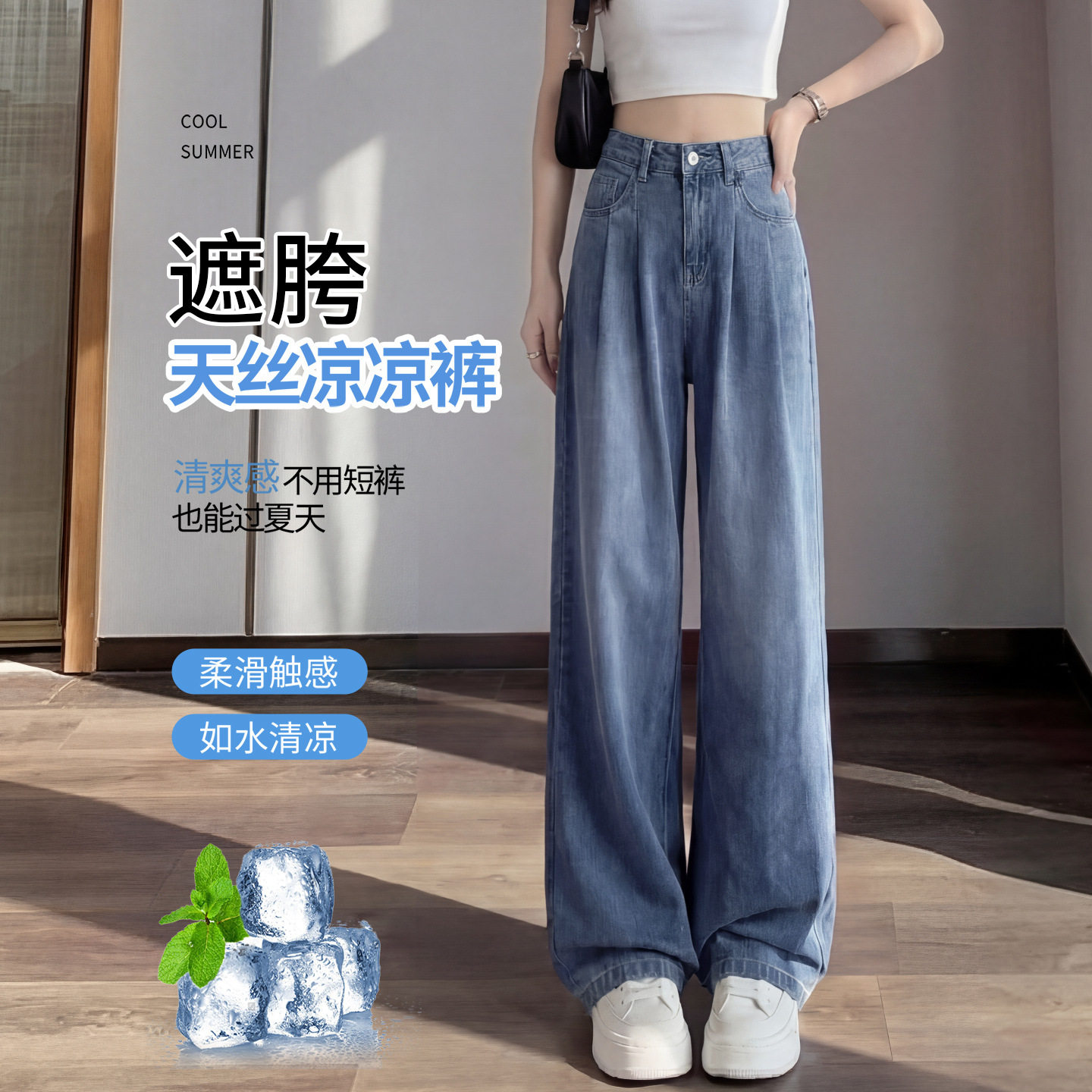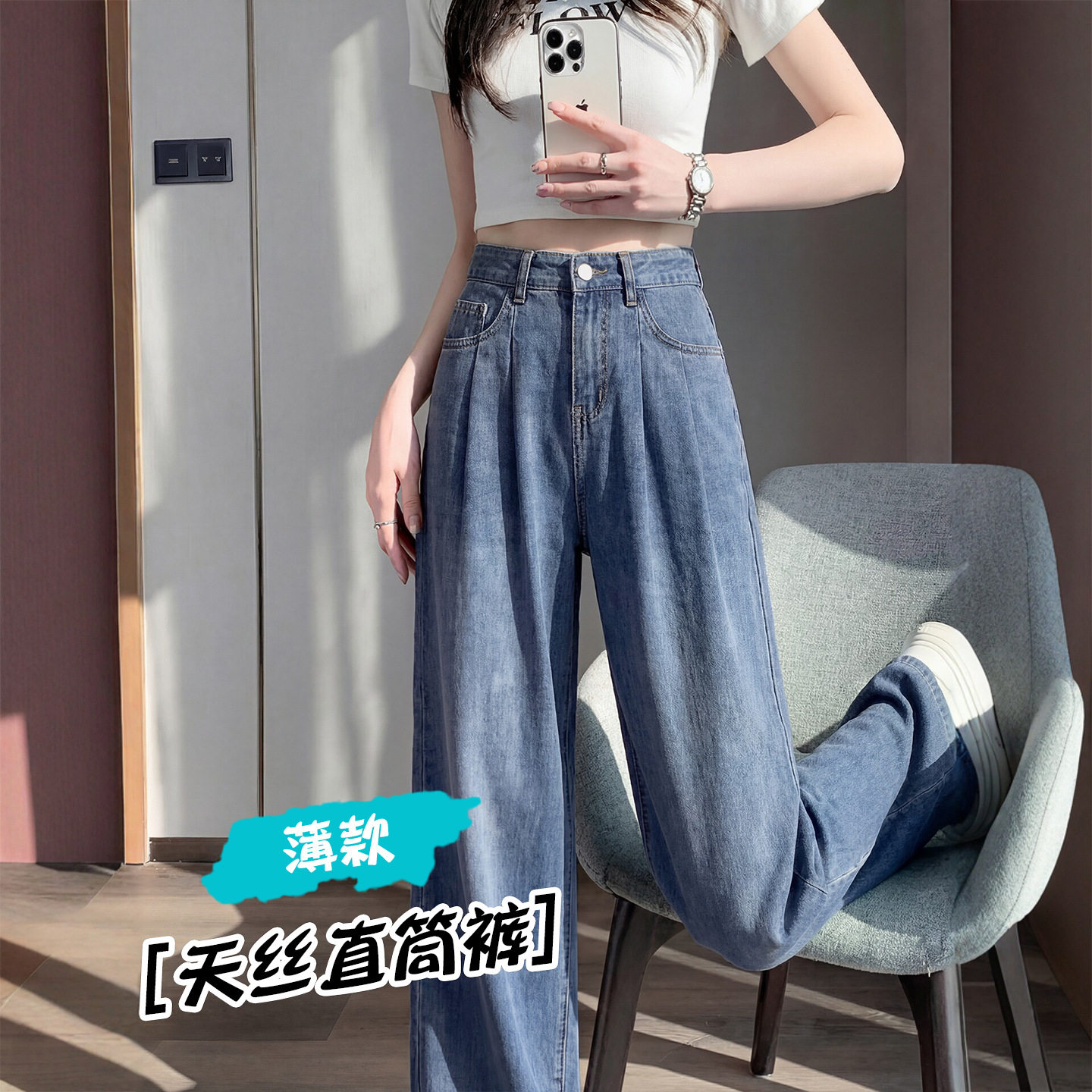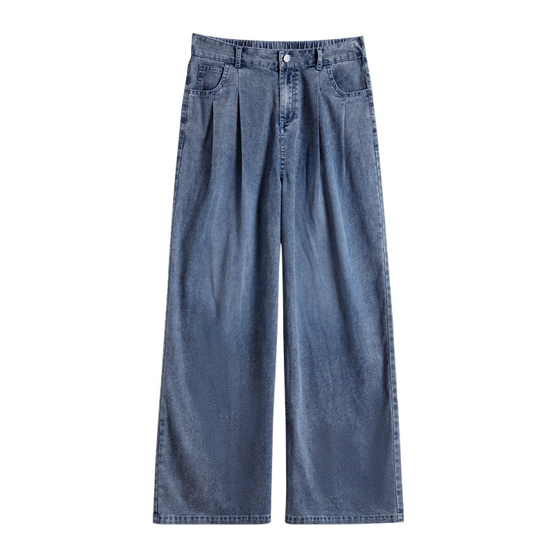 天丝牛仔裤女春夏季薄款2026新款小个子垂感宽松冰丝直筒阔腿裤子