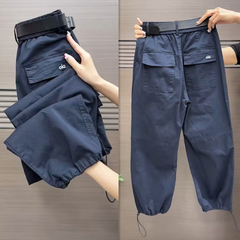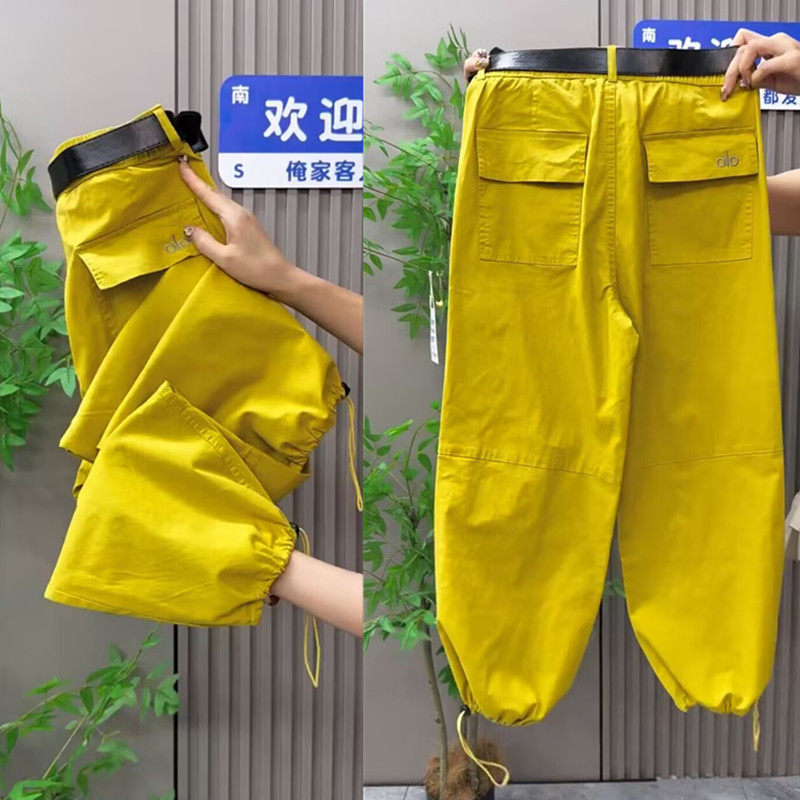 2026春夏季新款高腰宽松显瘦工装哈伦裤多口袋小个子九分休闲裤女