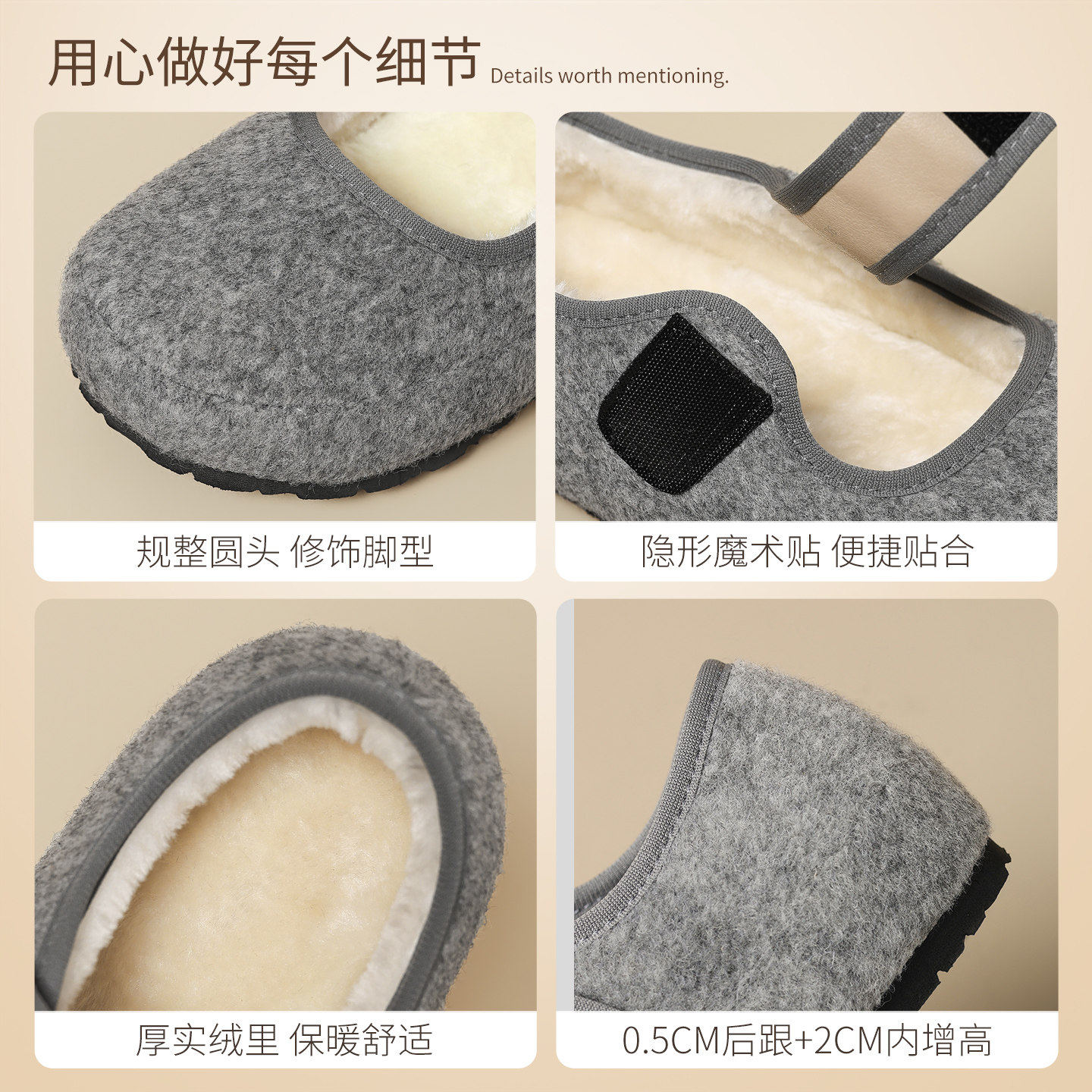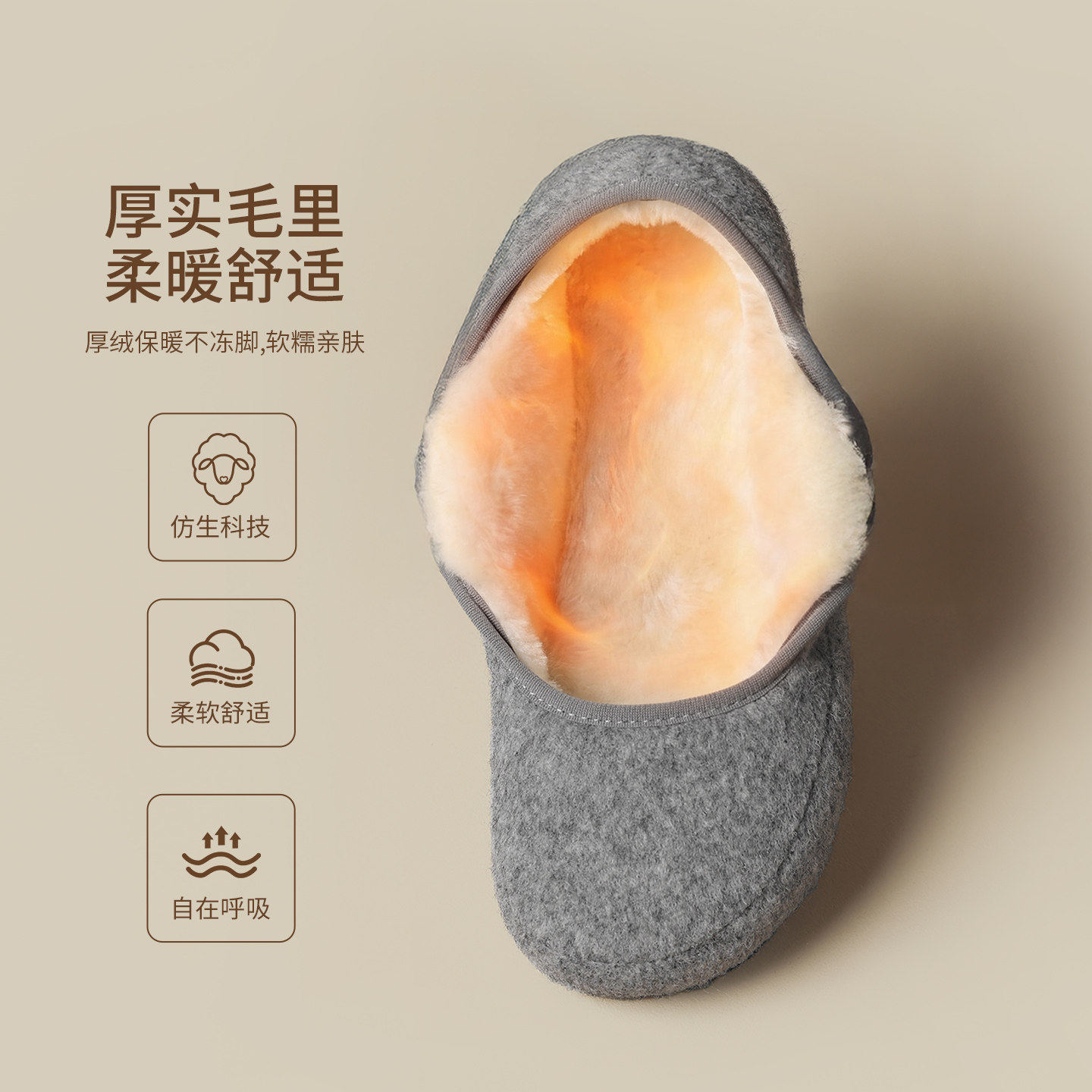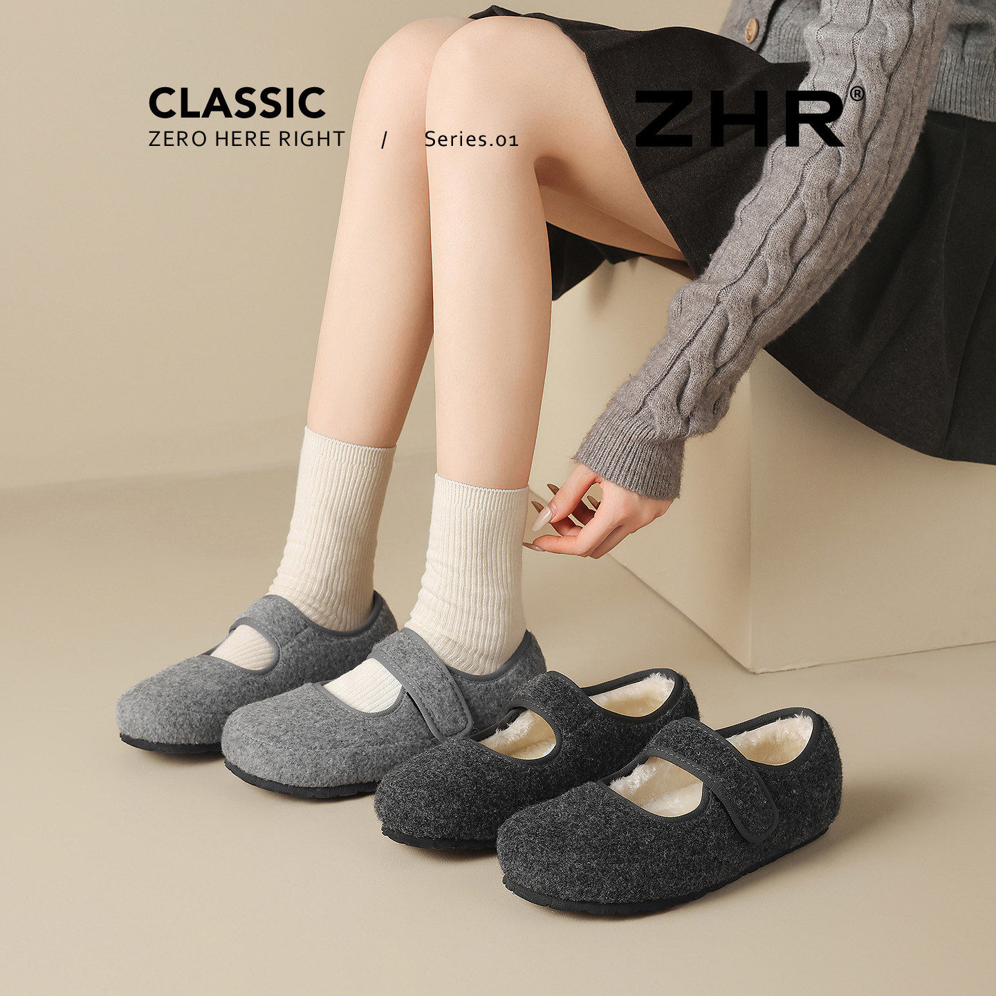 ZHR加绒勃肯鞋女2025新款冬厚底毛毛鞋灰色玛丽珍单鞋百搭豆豆鞋