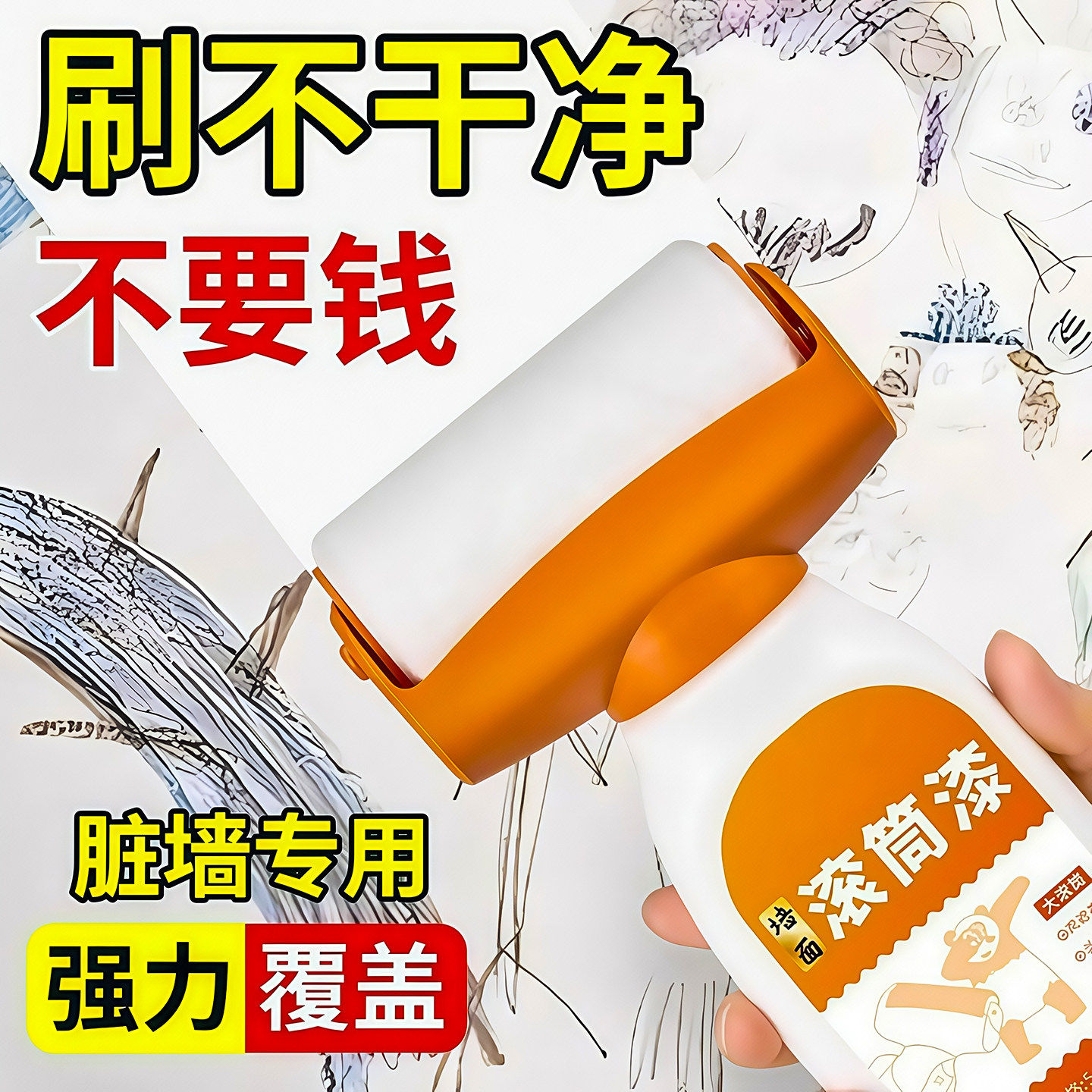 白墙面滚筒漆乳胶刷墙补墙自刷膏去污神器墙壁修复自喷修补涂料色