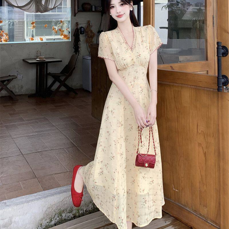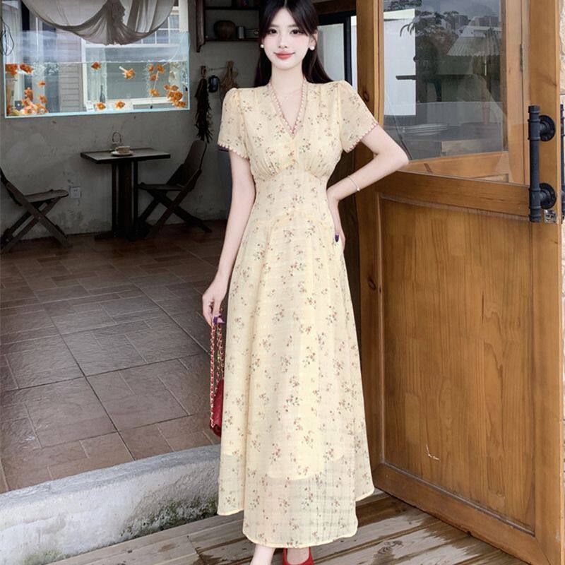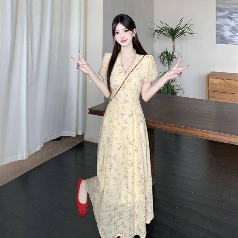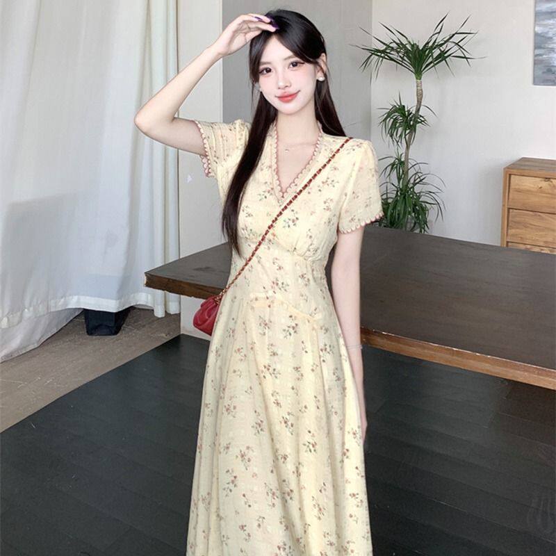 大码法式微胖绝美连衣裙女装夏季梨形身材碎花裙胖MM遮肚显瘦裙子