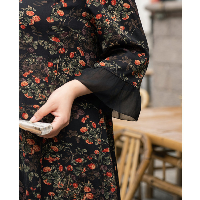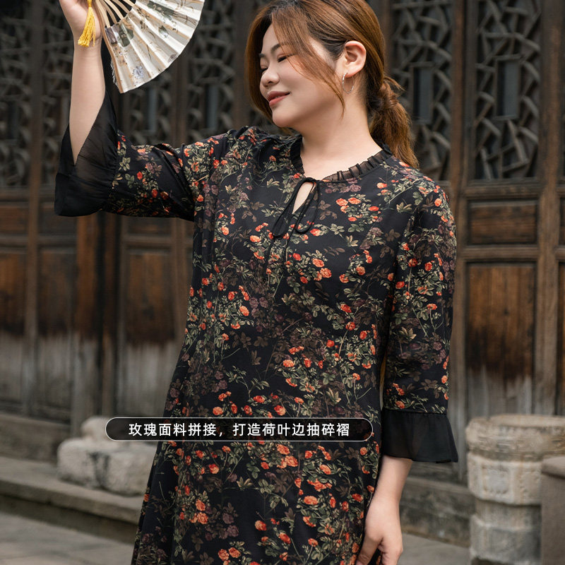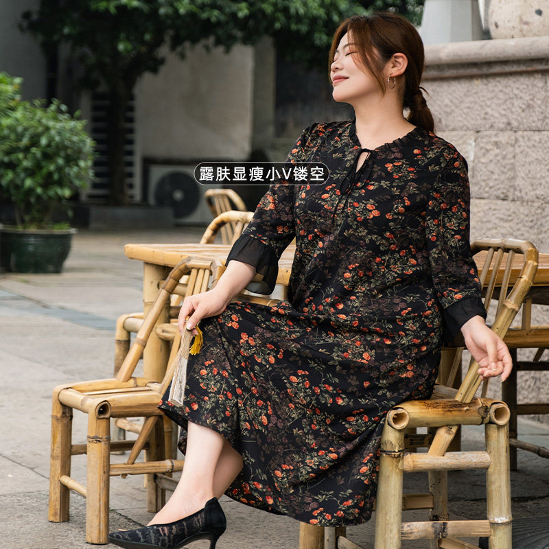 美丽客栈减龄碎花裙 气质绝美连衣裙大码女胖mm显瘦松弛感长裙夏
