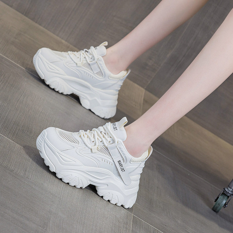 牛皮网面老爹鞋女2026春季新款百搭厚底小白增高7CM休闲爆款透气