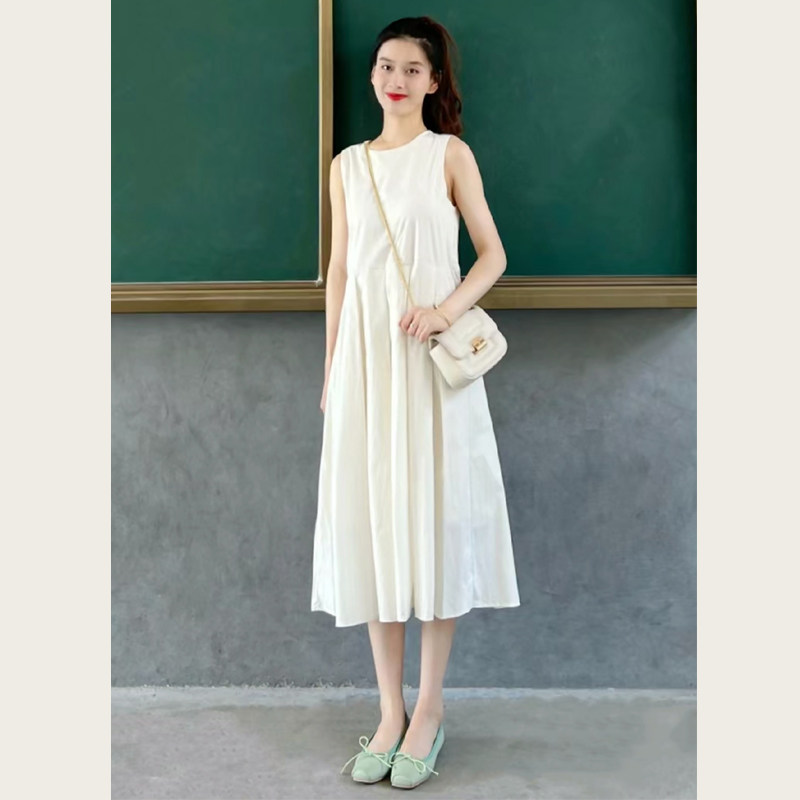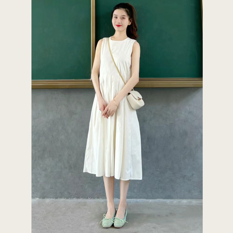 法式白色连衣裙女夏季新款茶歇小个子无袖背心裙气质显瘦中长裙子