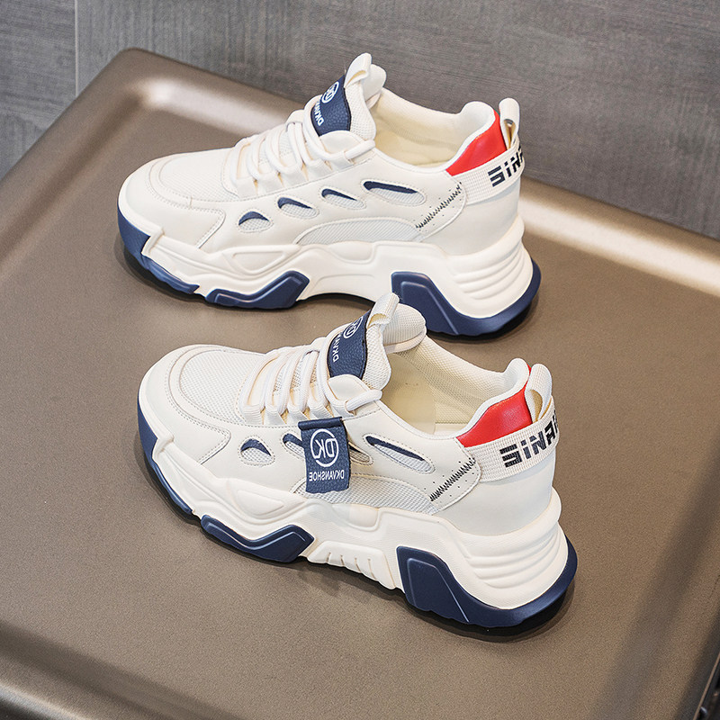 香港真皮厚底内增高老爹鞋女2026春季休闲鞋运动鞋轻便女鞋小白鞋