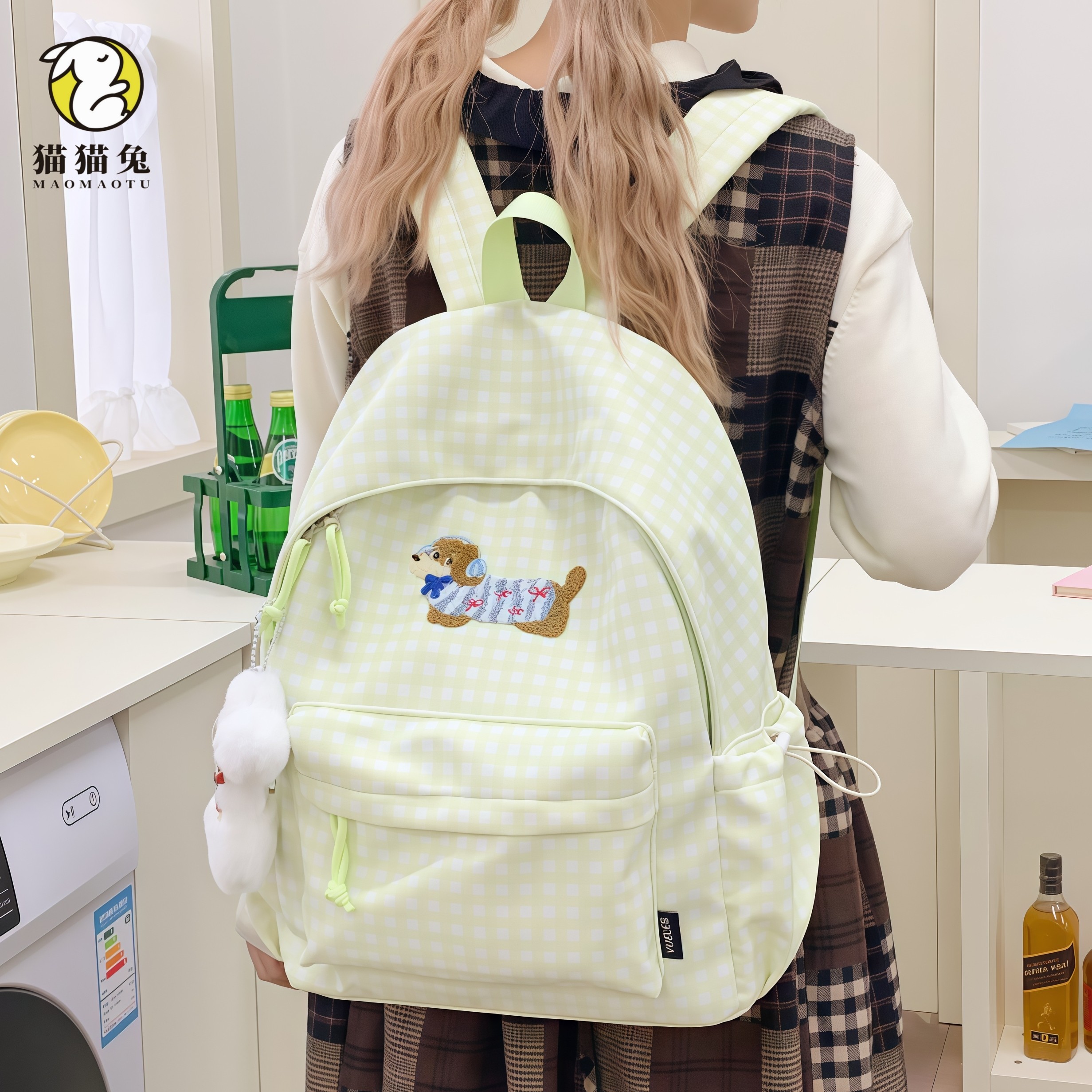 311线报网描述:蓝色格纹高颜值大容量双肩包 送运费险