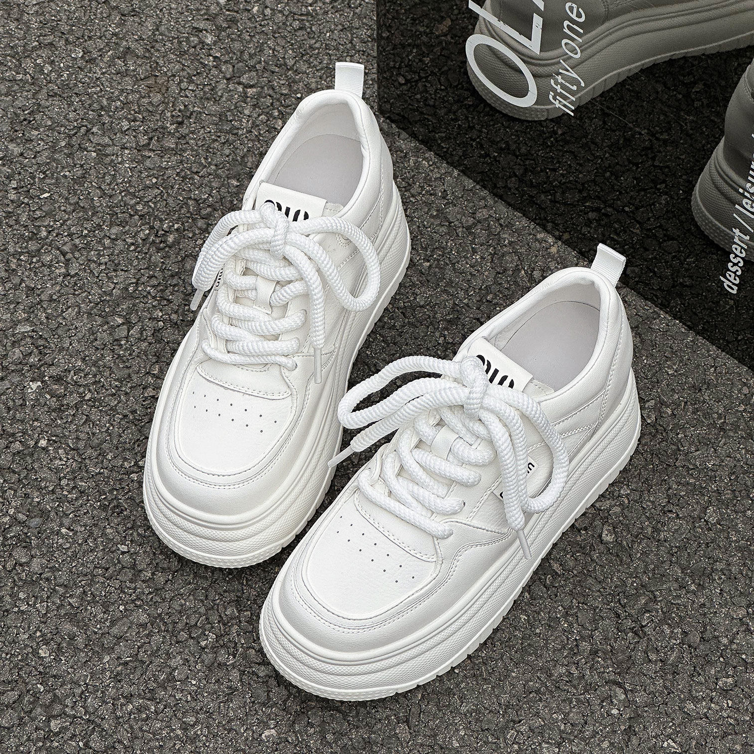 8cm内增高小白鞋女2026新款爆款秋款百搭真皮小个子厚底松糕鞋子