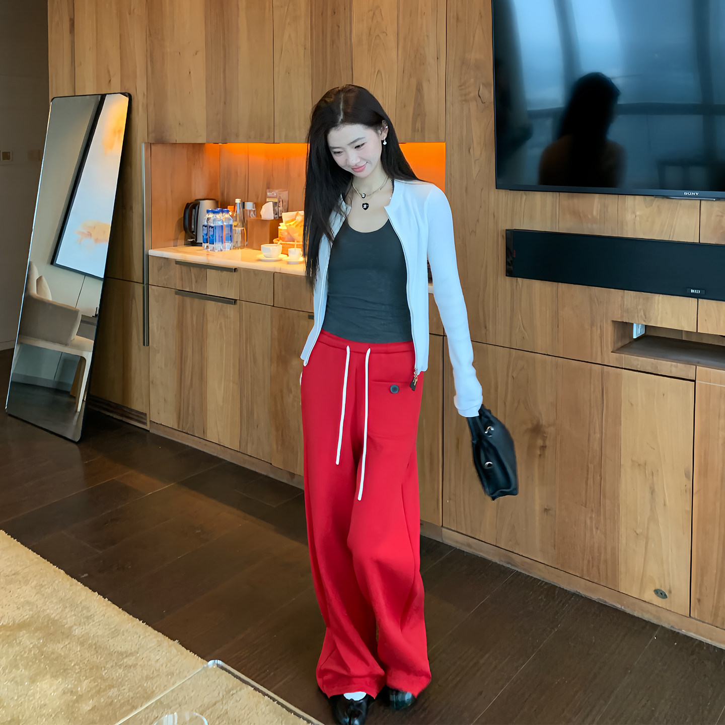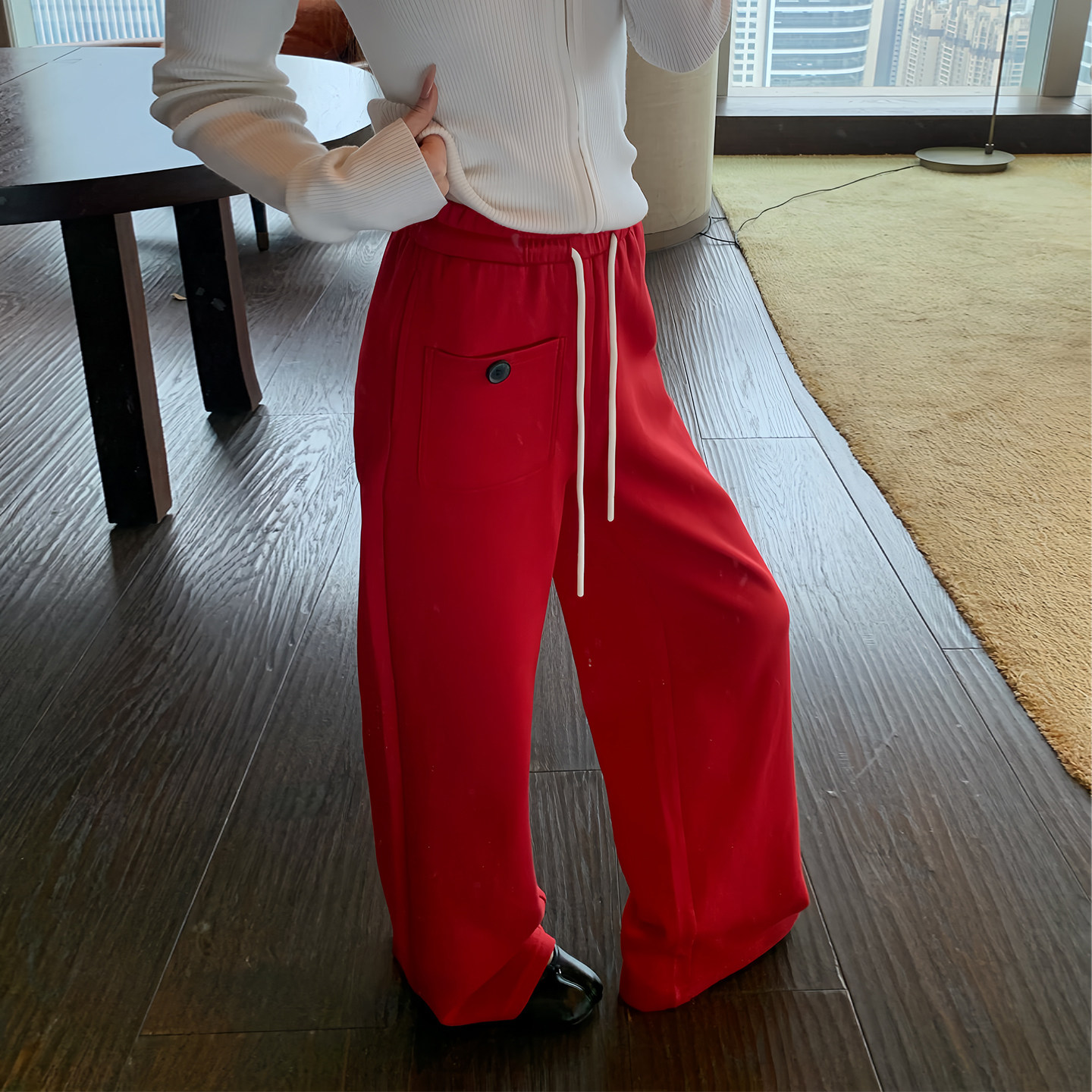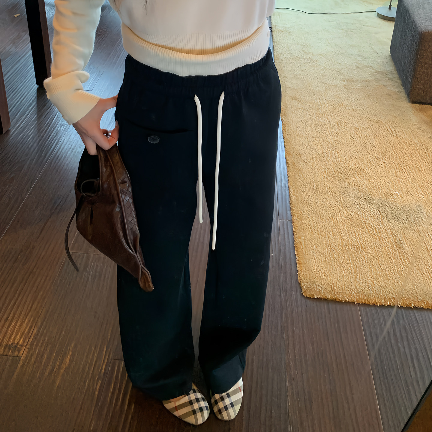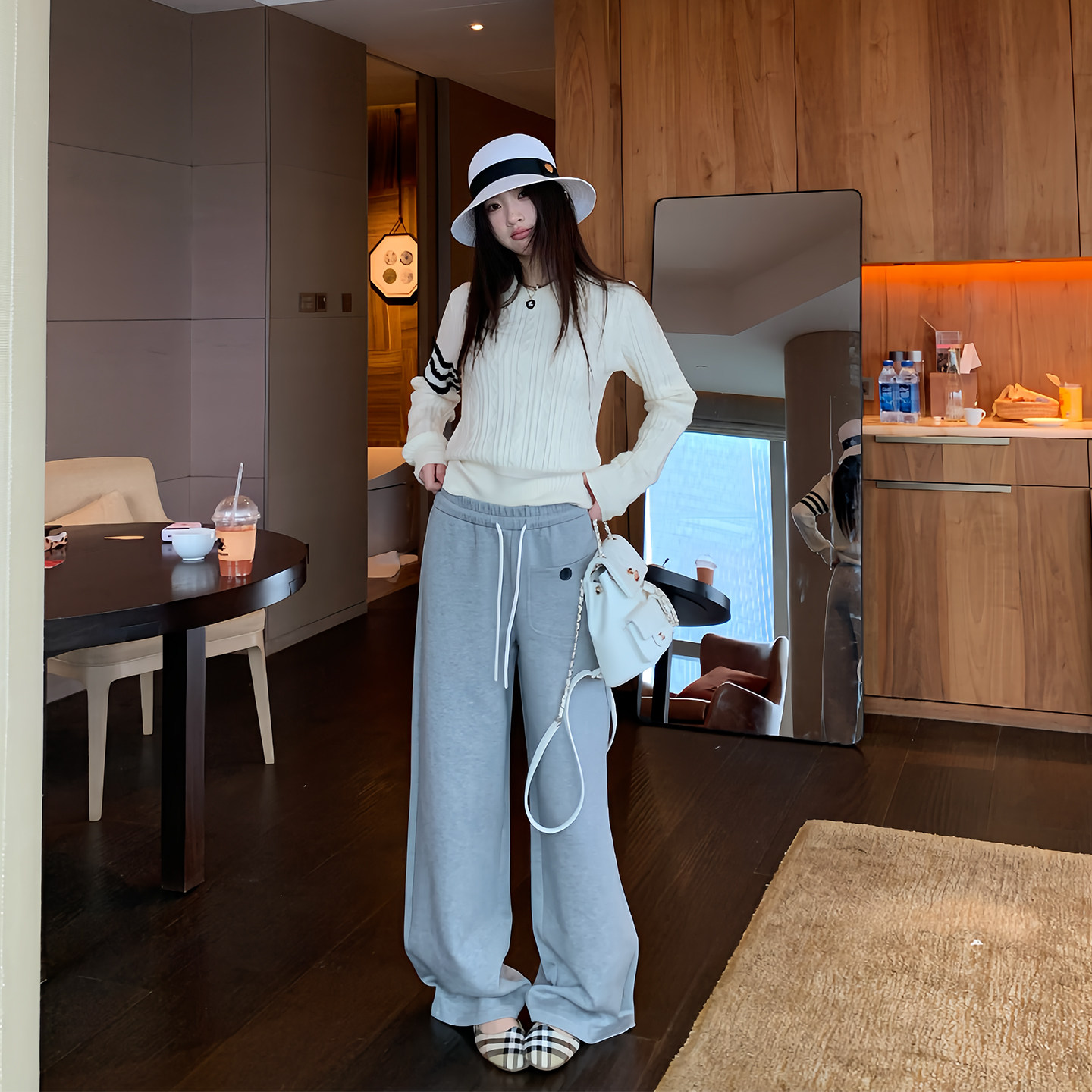橘子树在哪儿灰色直筒休闲裤女款春季垂感运动显瘦抽绳松紧腰裤子