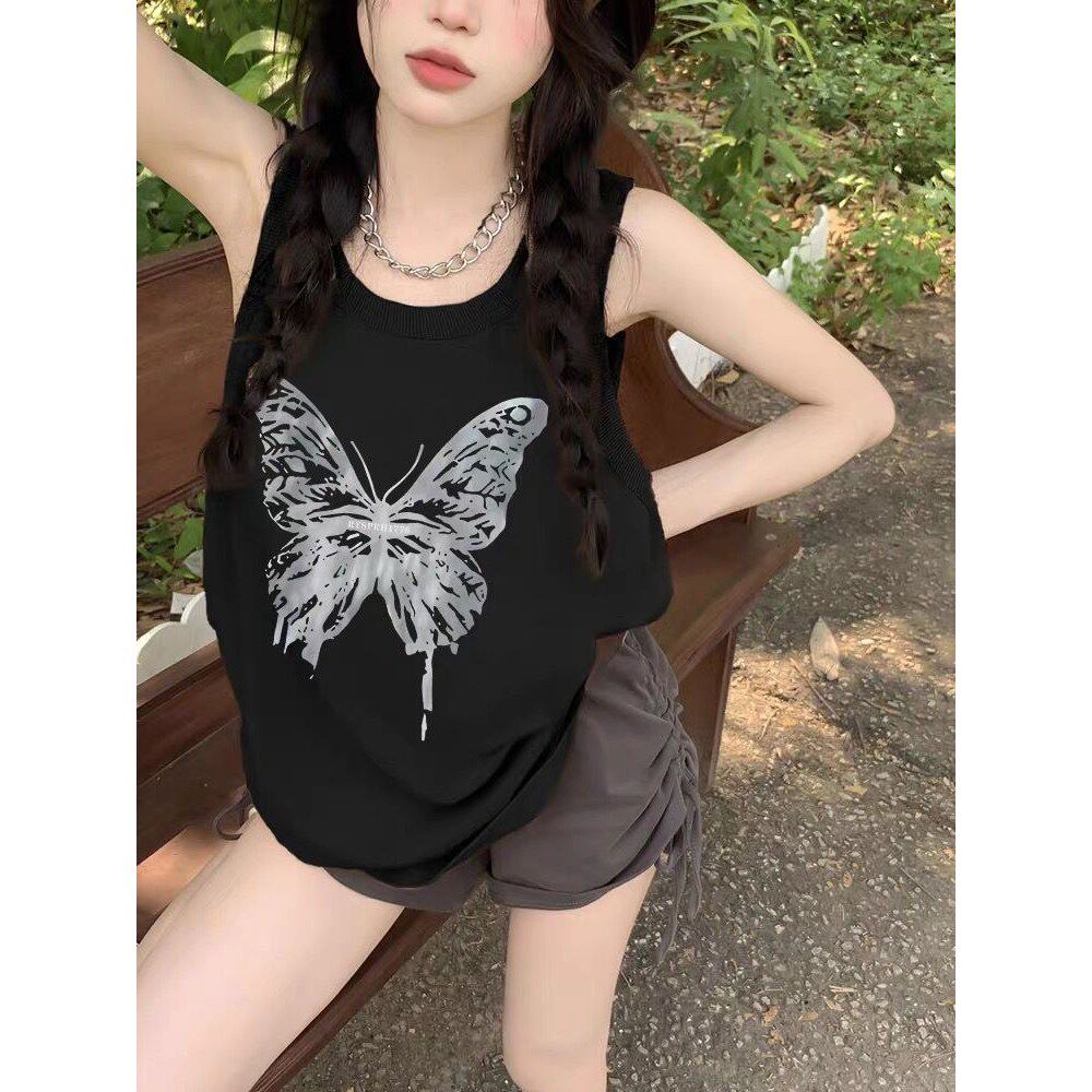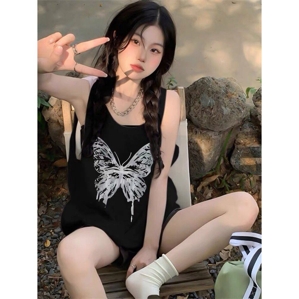 夏新款港味纯棉内搭打底衫蝴蝶吊带篮球背心女无袖外穿百搭上衣服