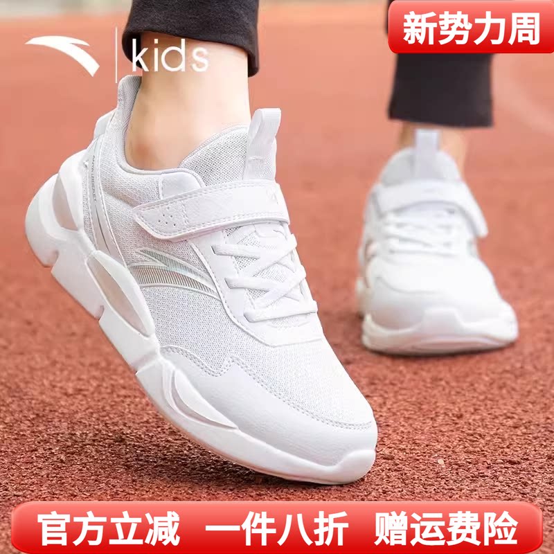 安踏童鞋儿童小白鞋女童网面透气鞋子男童白色运动鞋春季大童跑鞋